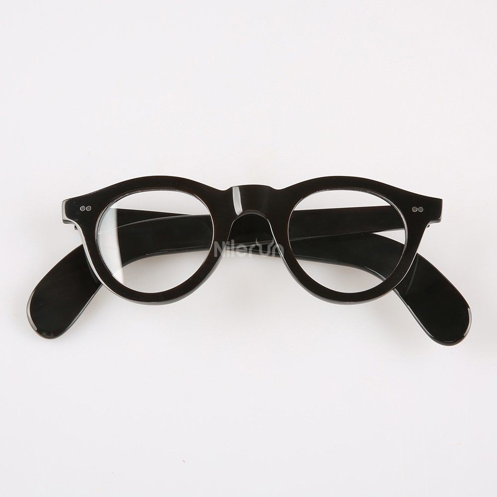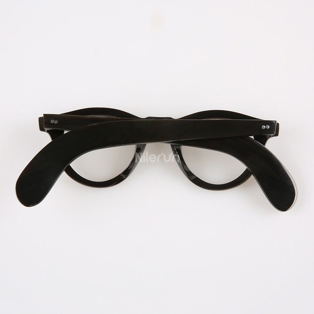日韩风圆形光学眼镜架两颗铆钉饰黑色水牛角男女太阳镜偏光墨镜