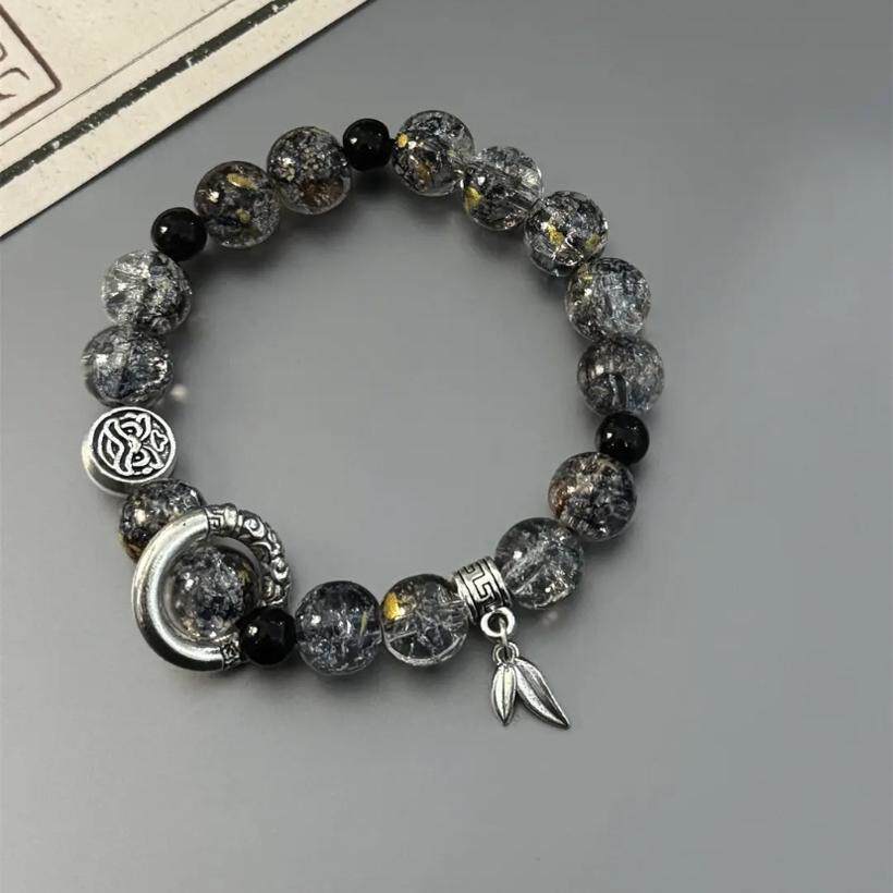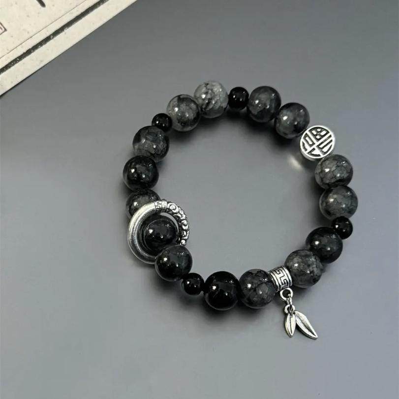 火山石黑色串珠男士手链女款小众设计高级感冷淡风情侣款国潮饰品
