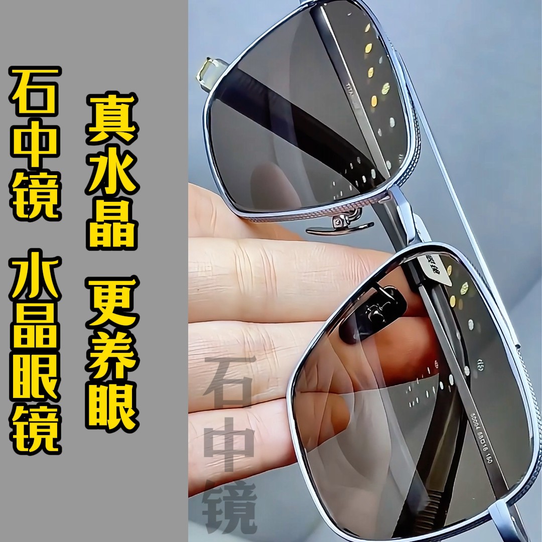 真水晶石眼镜正品高清晰纯水晶石护目墨镜高档养目太阳镜防辐射镜