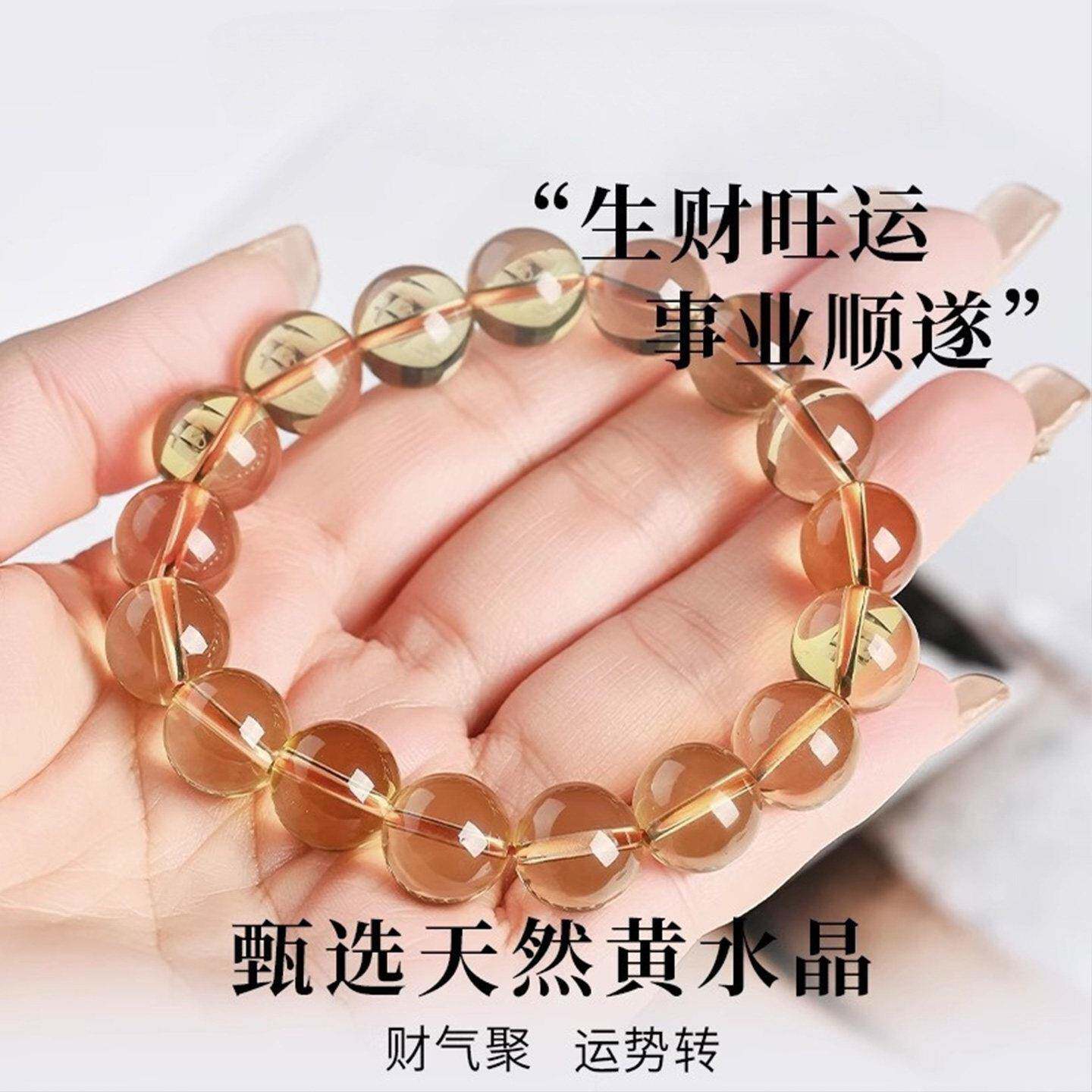 普陀山天然黄水晶手串暴力黄纯净体招财转运珠柠檬黄男女塔晶手錬