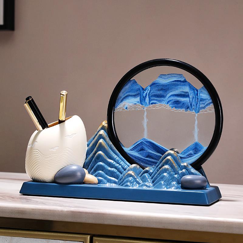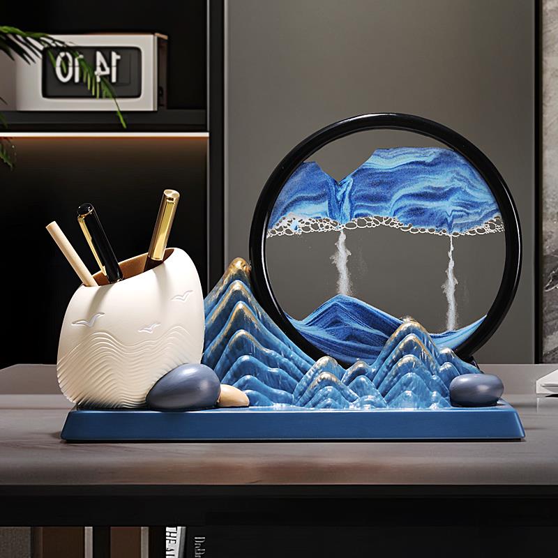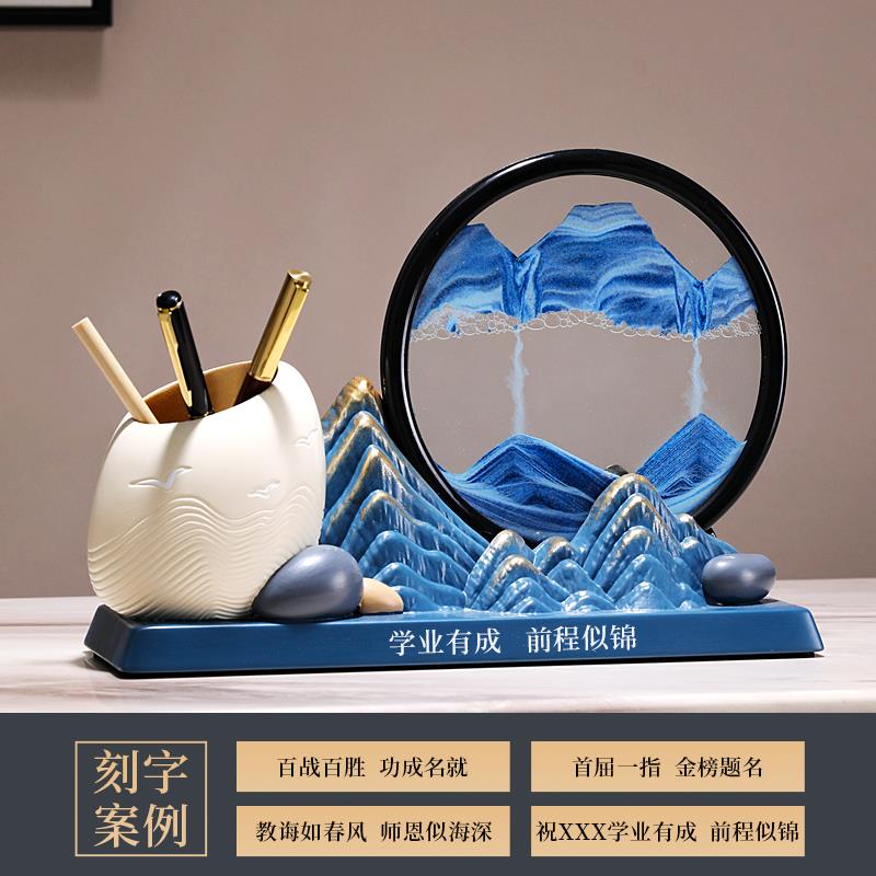 教师节谢师笔筒时来运转流沙画 画摆件办公室高档生日毕业礼物送