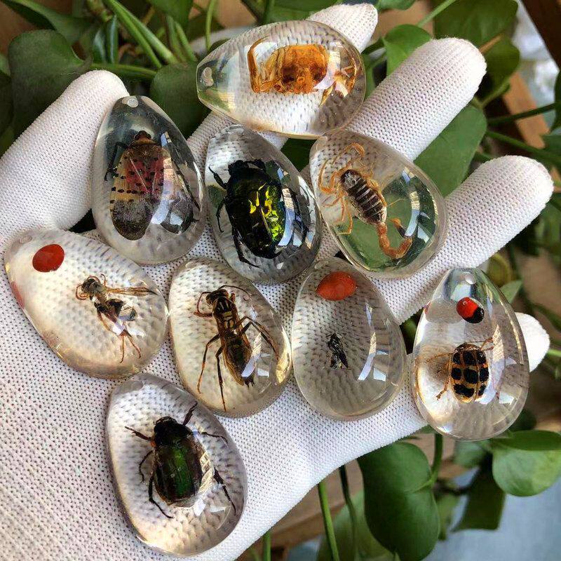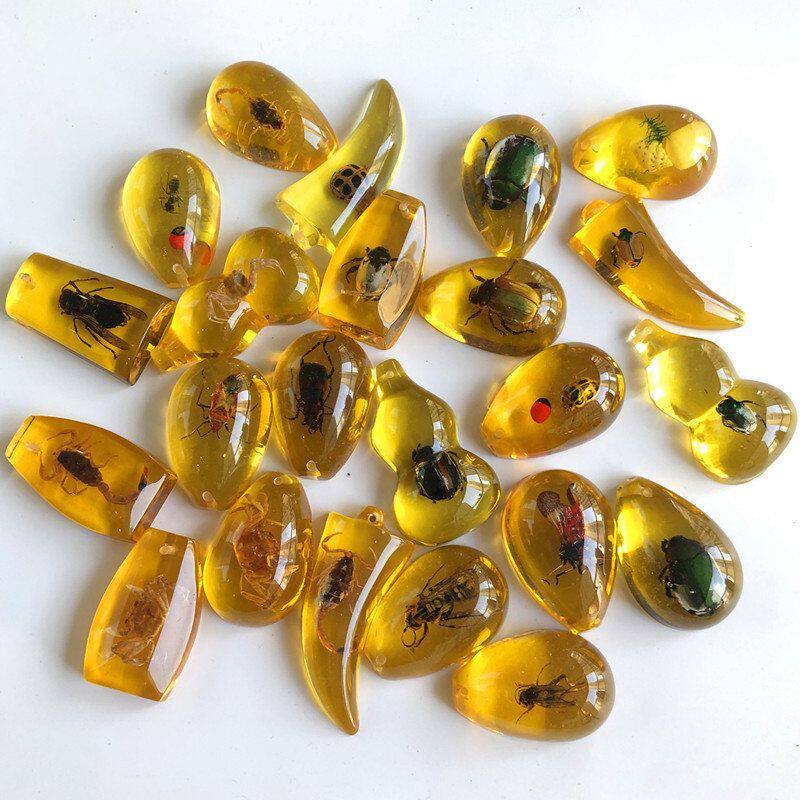 夜光琥珀真昆虫标本 儿童挖掘考古盲盒吊坠配件 树脂配件昆虫琥珀
