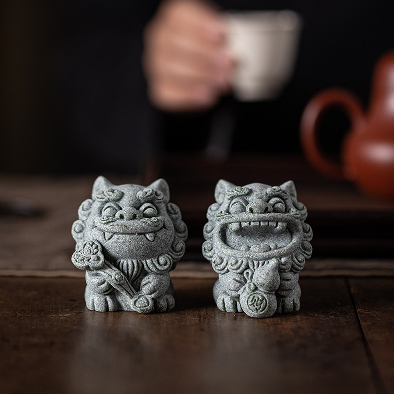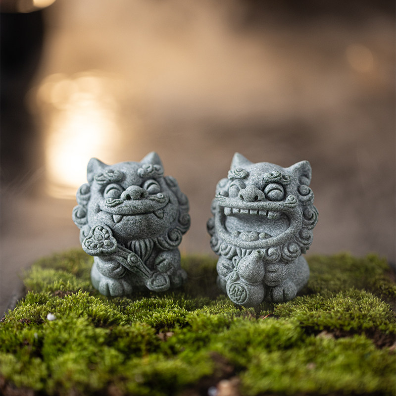 国潮风可爱石狮子福禄一对招财茶宠摆件创意鱼缸造景盆栽客厅装饰