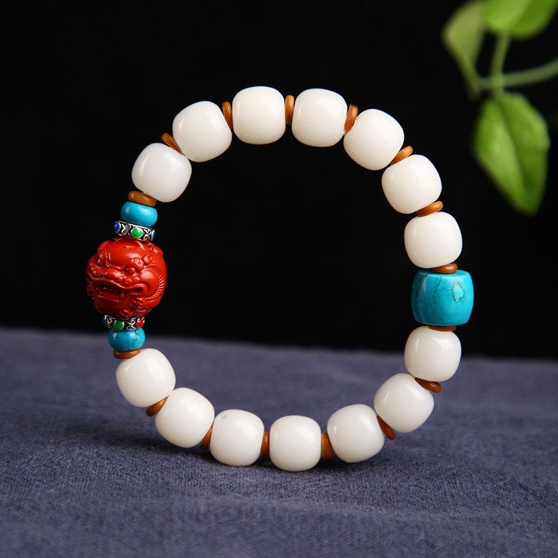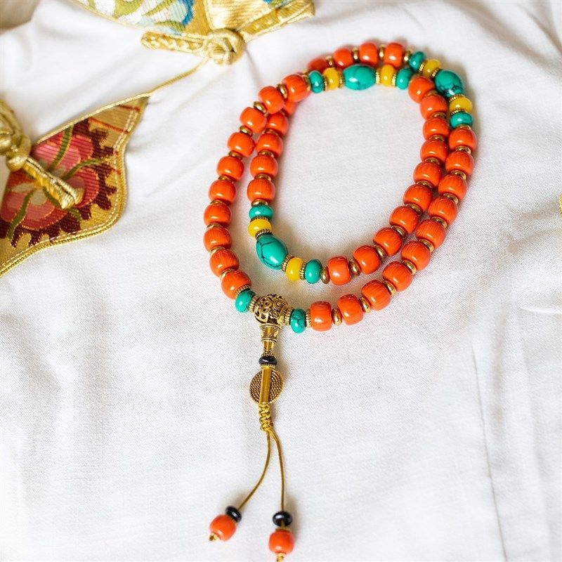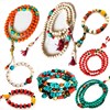 防小人手串西藏风手链藏族多层复古藏式民族风做旧绿松石红色牛骨