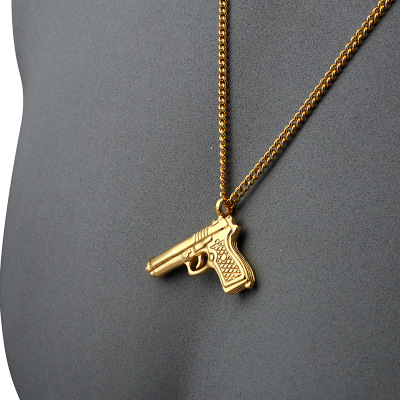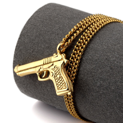 美国99式不锈钢小款手枪HIPHOP潮牌嘻哈吊坠项链夜店街舞钛钢项坠