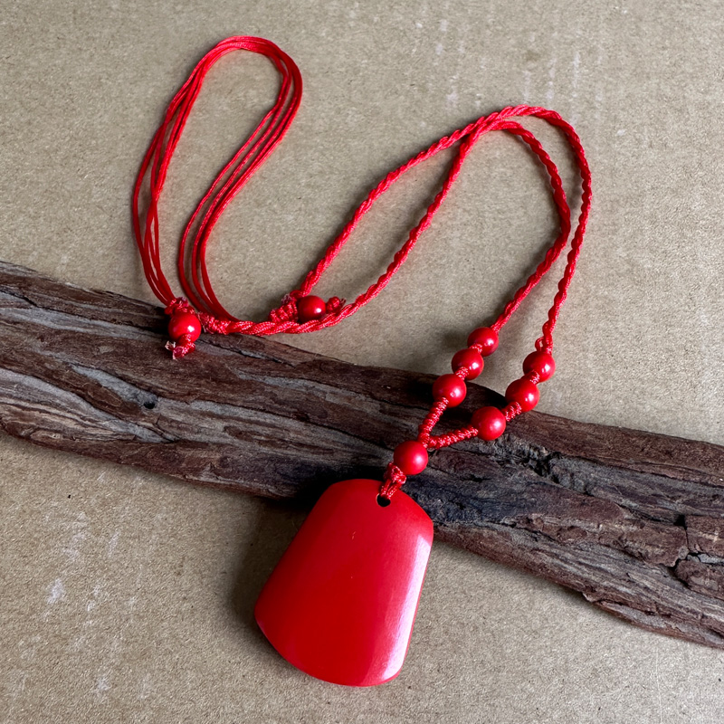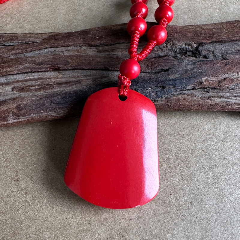 原矿高含量红朱砂无事牌吊坠 男女本命龙年光面平安吉祥无字项链