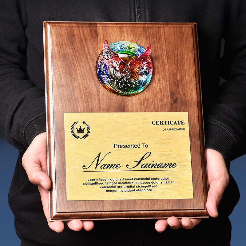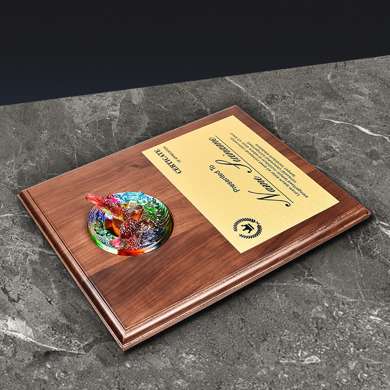 授权牌定制定做水晶奖牌奖杯制作黑胡桃实木金箔证书荣誉加盟牌匾