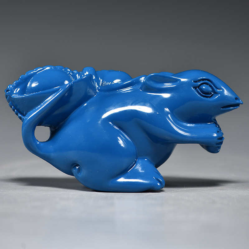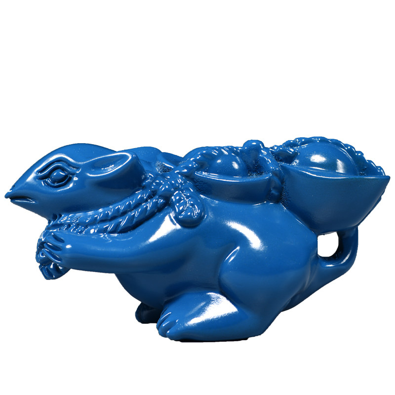 蓝色木雕老鼠摆件实木十二生肖鼠家居补角吉祥物装饰红木工艺品