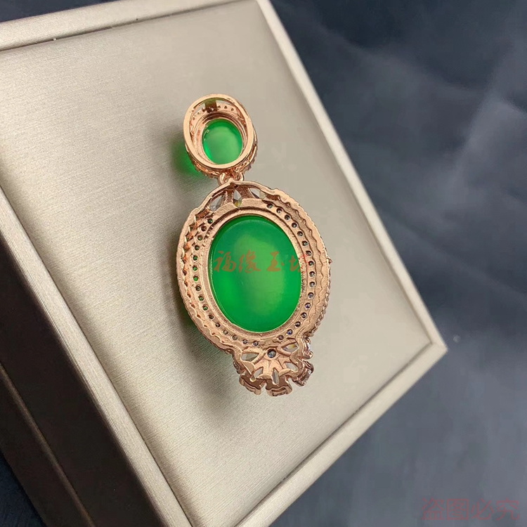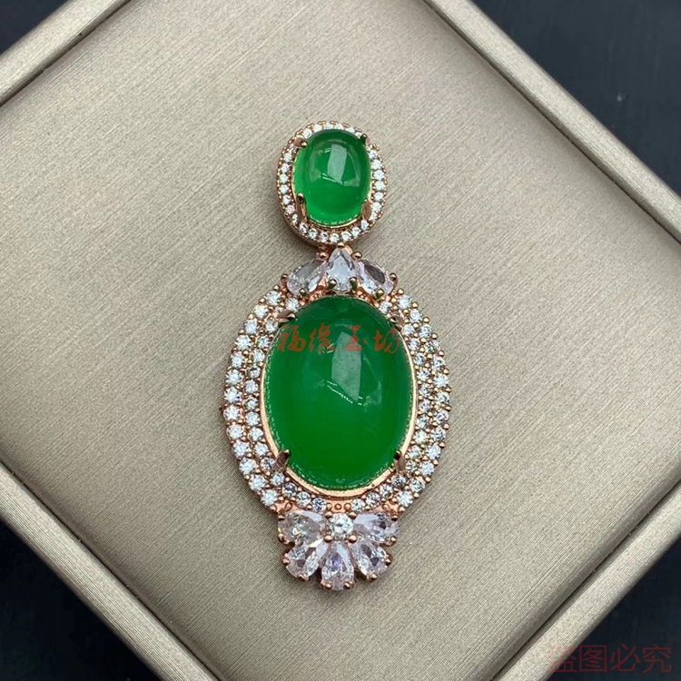 原创设计翡翠925银镶满绿蛋面女款冰种帝王绿玉石吊坠挂件