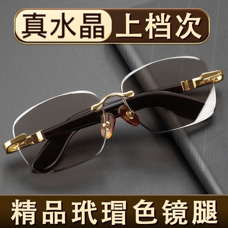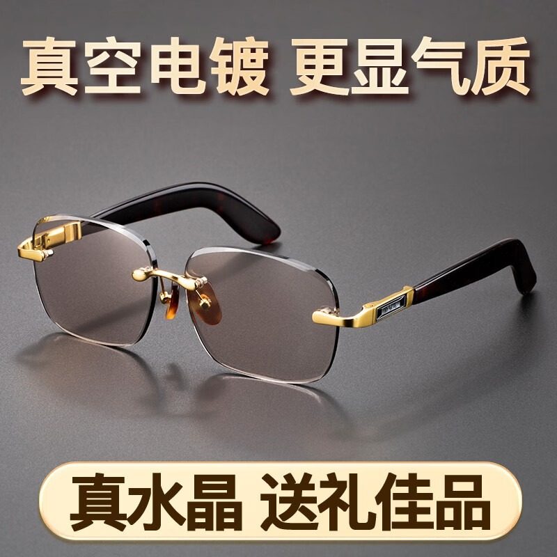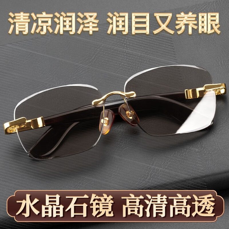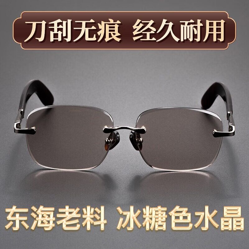 天然水晶石眼镜精选东海冰糖老料石头镜养眼润目高清高透水晶镜