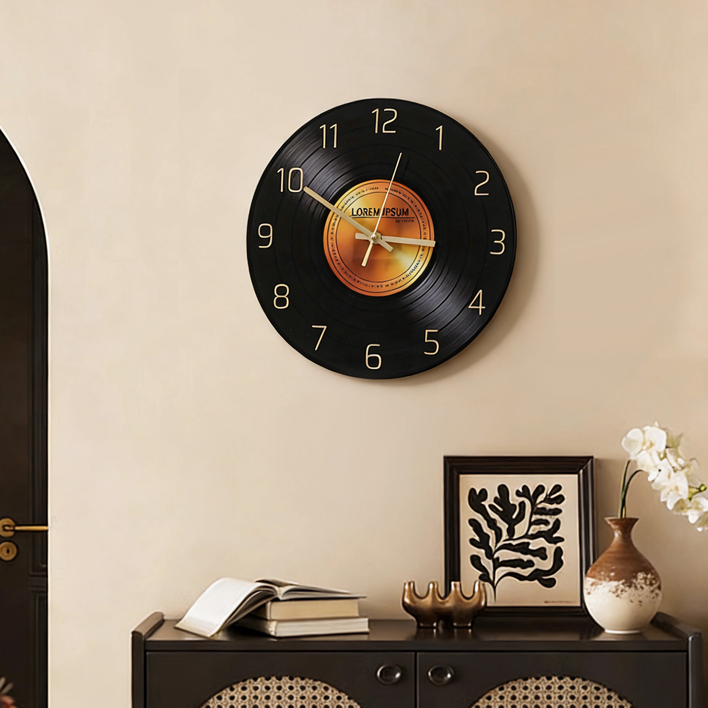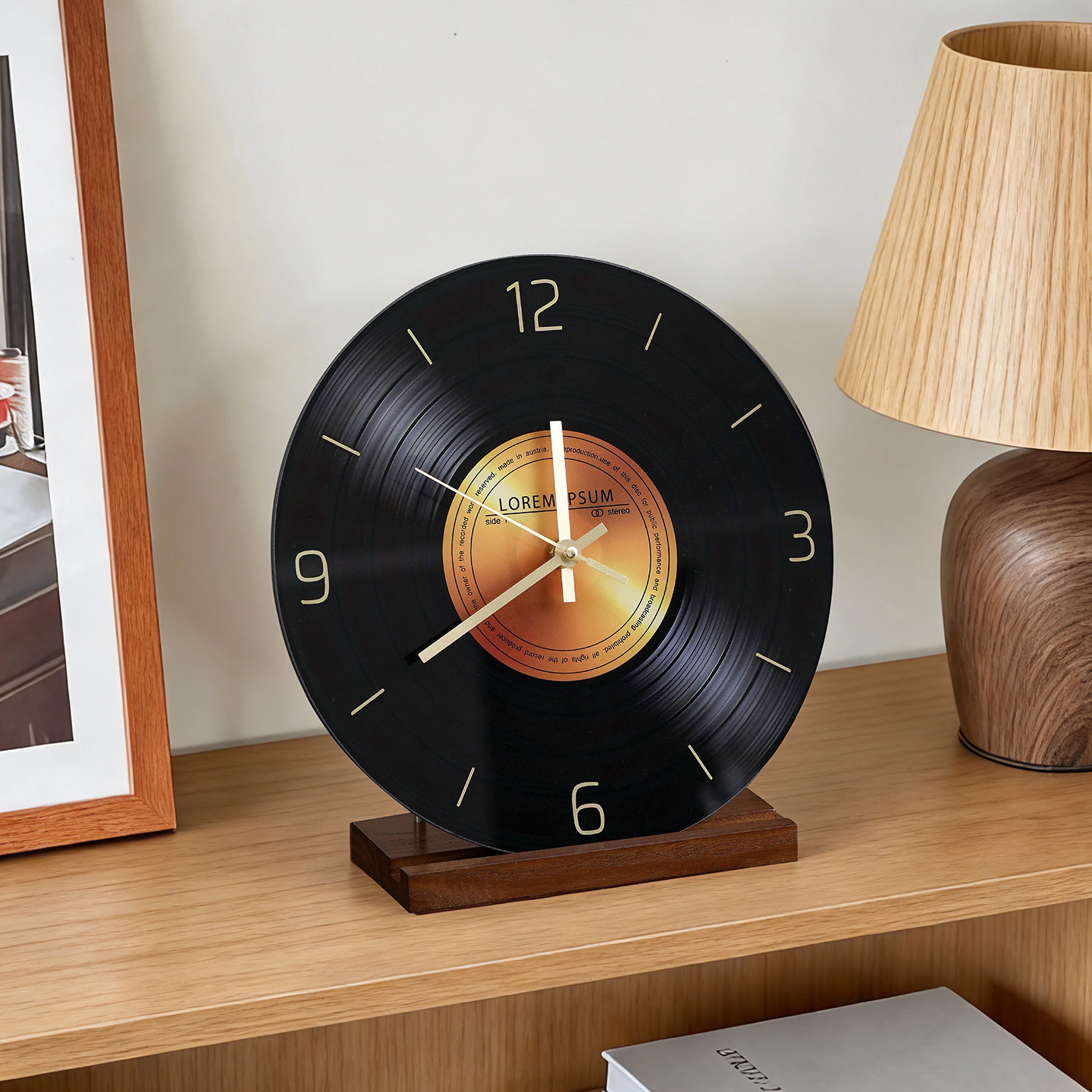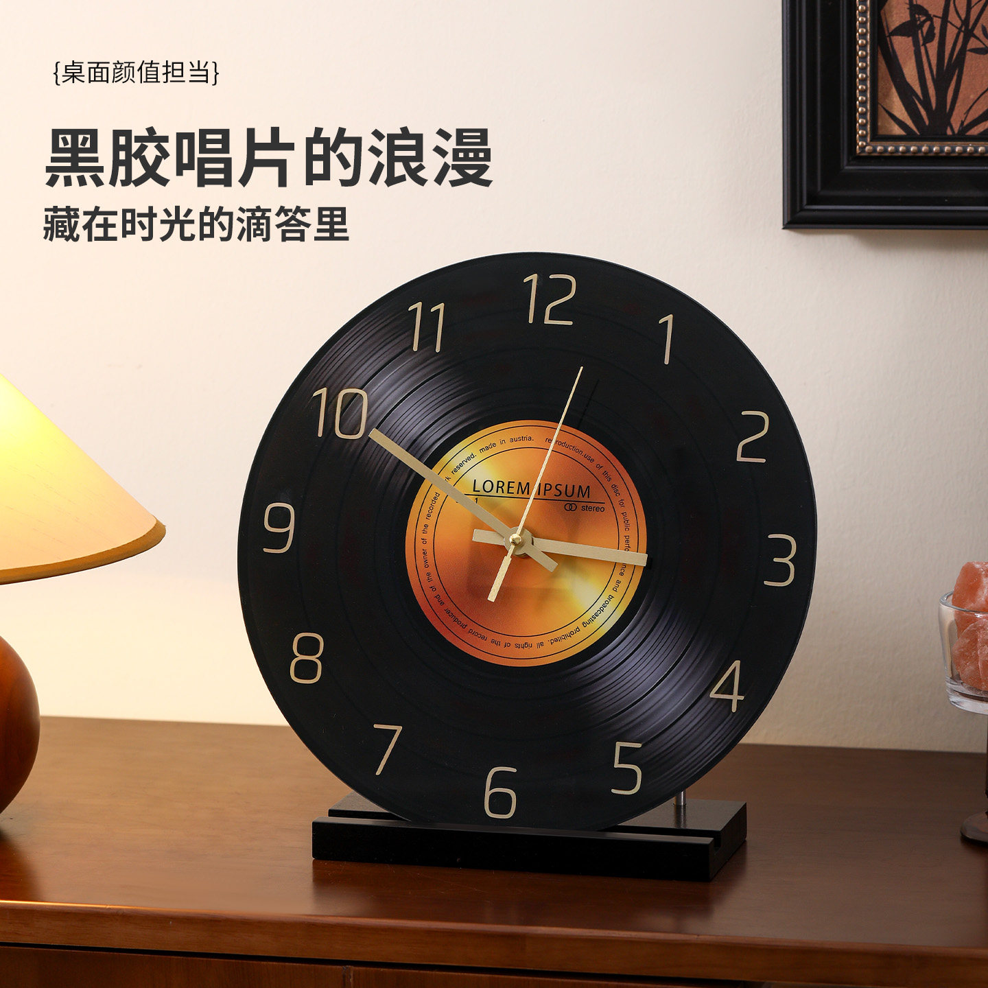 黑胶唱片时钟摆放复古桌面静音钟表中古风客厅创意装饰挂墙挂钟画