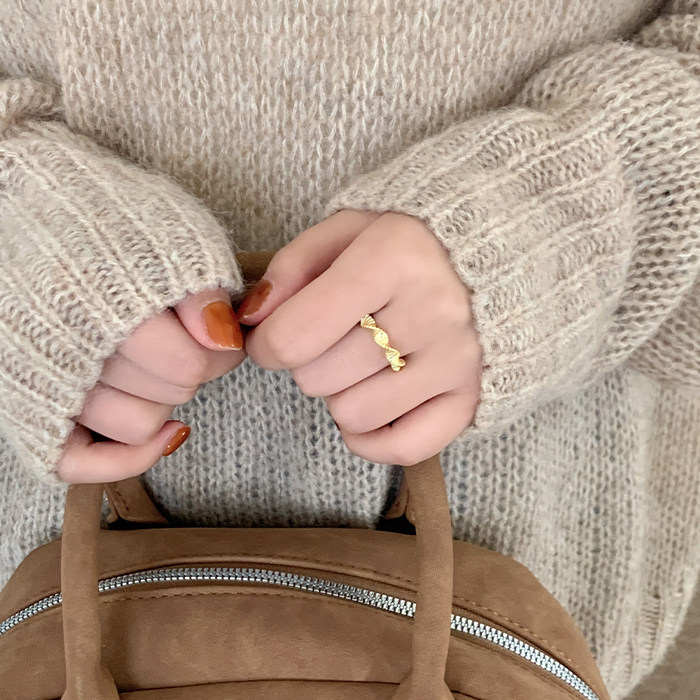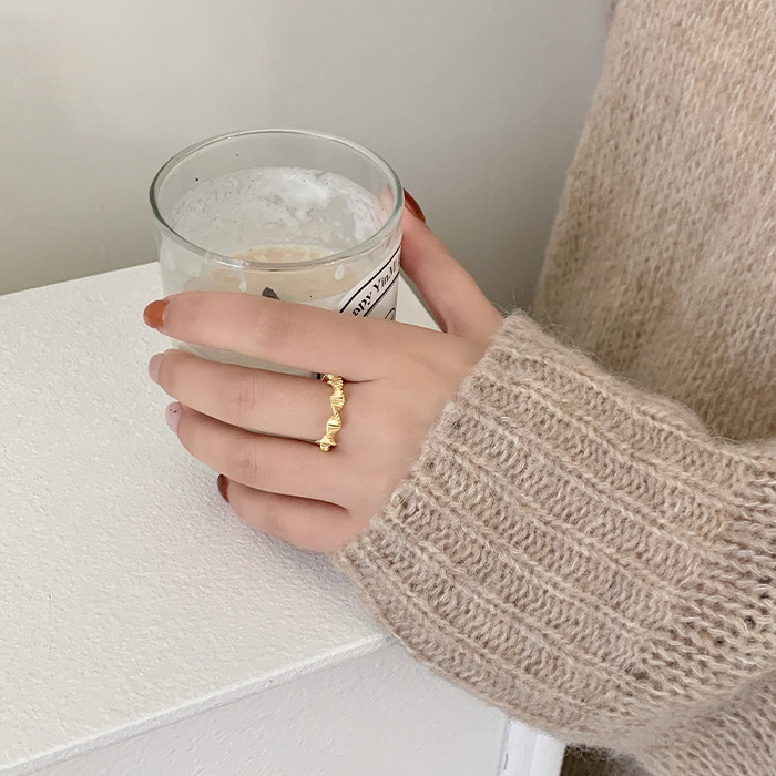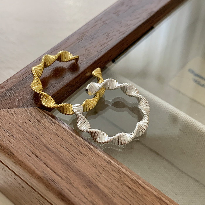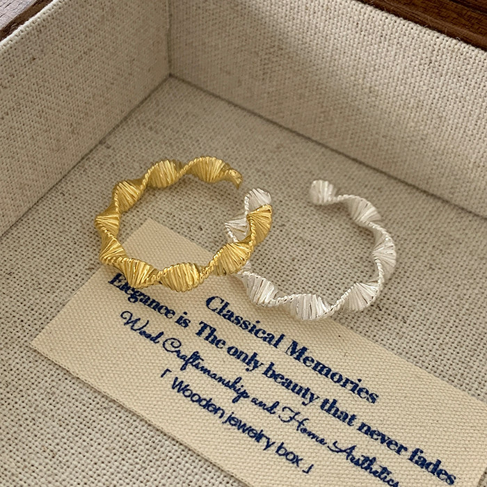韩版925纯银莫比乌斯扭纹麻花J戒指女几何波浪纹网红同款指环尾戒
