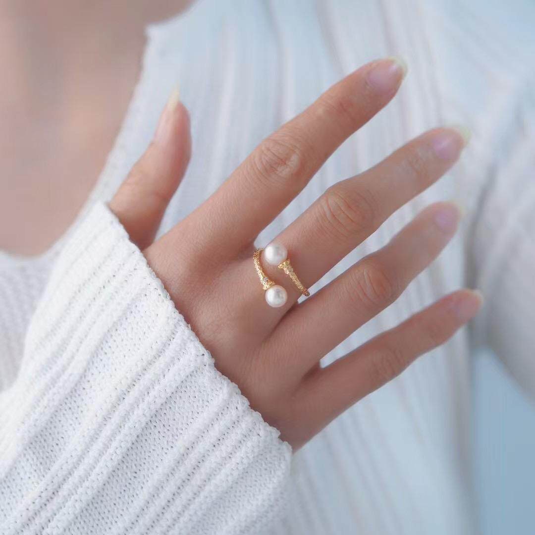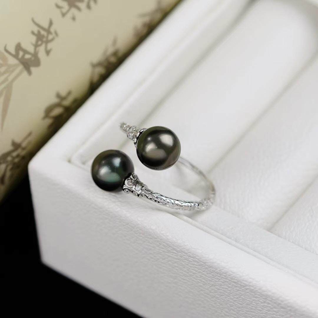 s925纯银戒指环 银饰双珠可调节珍珠戒指托DIY手工制作银配件空托