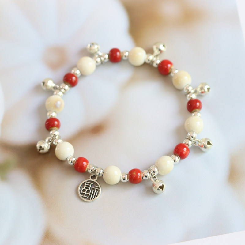 铃落秋水 原创新中式景德镇陶瓷铃铛手链国风文艺瓷珠手串饰品388