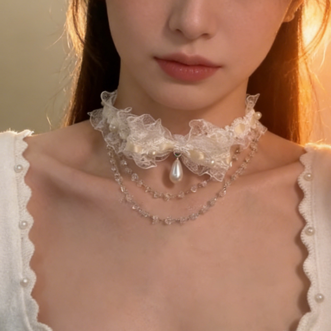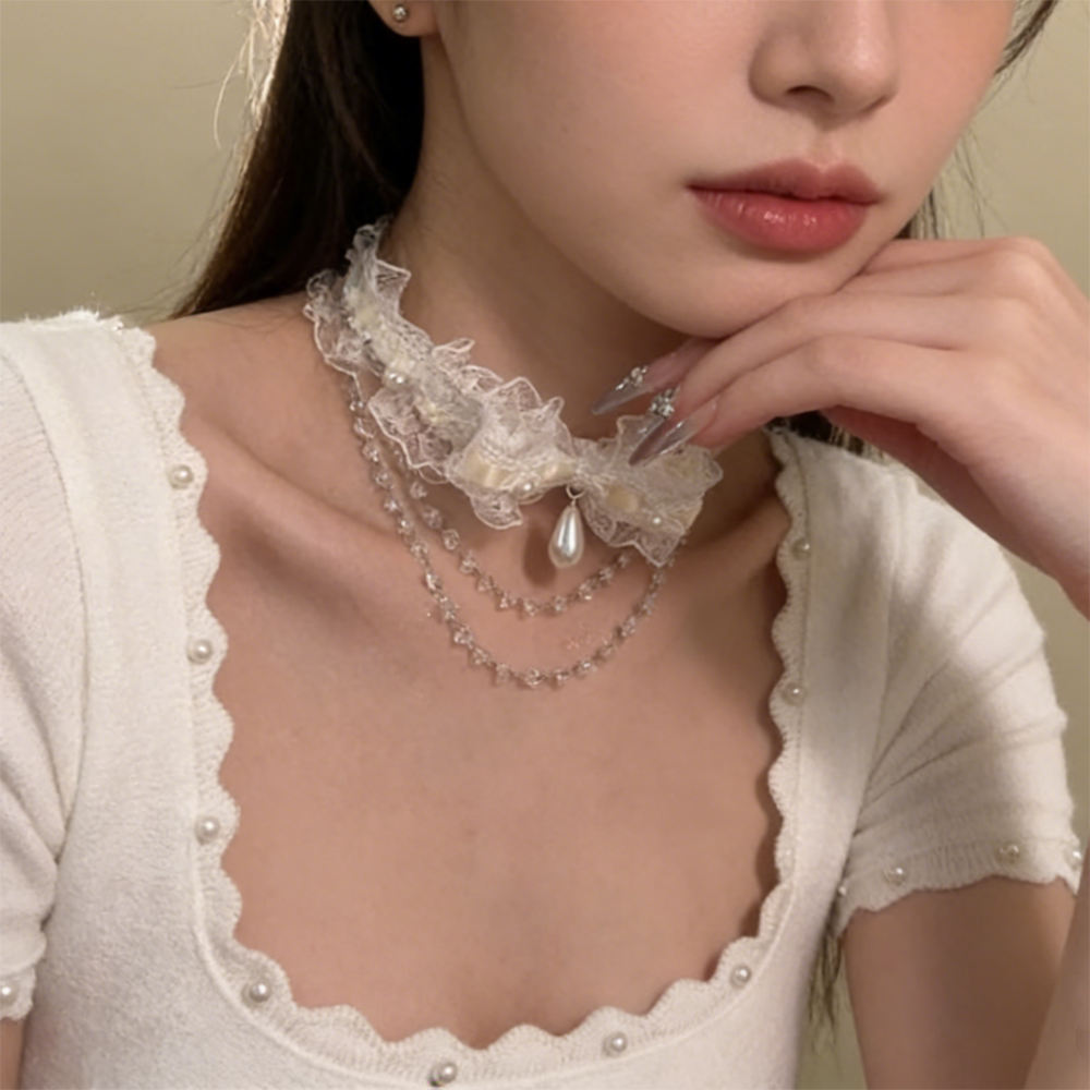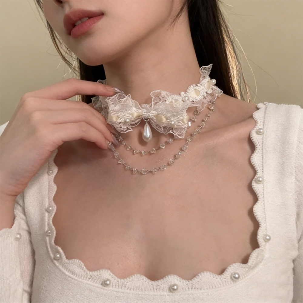 超仙白色蝴蝶结蕾丝choker流苏颈带纯欲风气质项链女甜美锁骨链