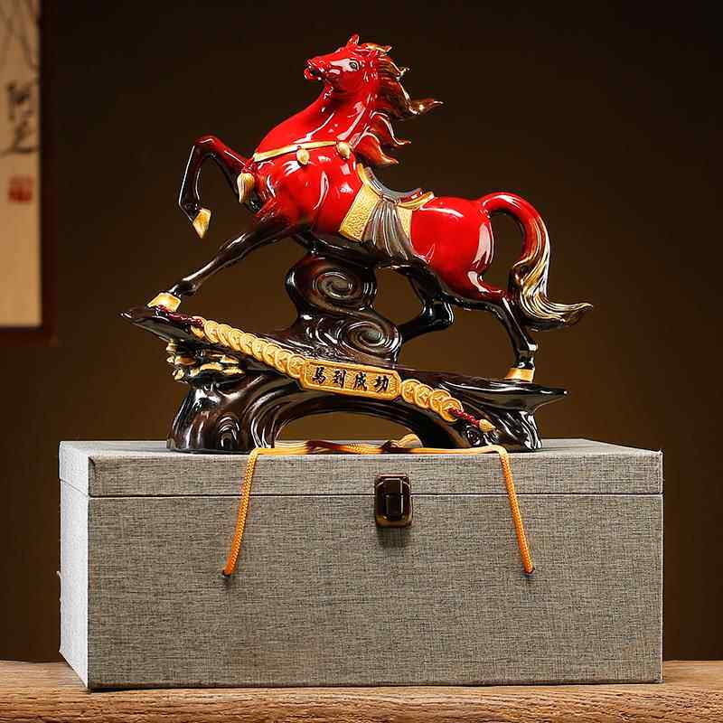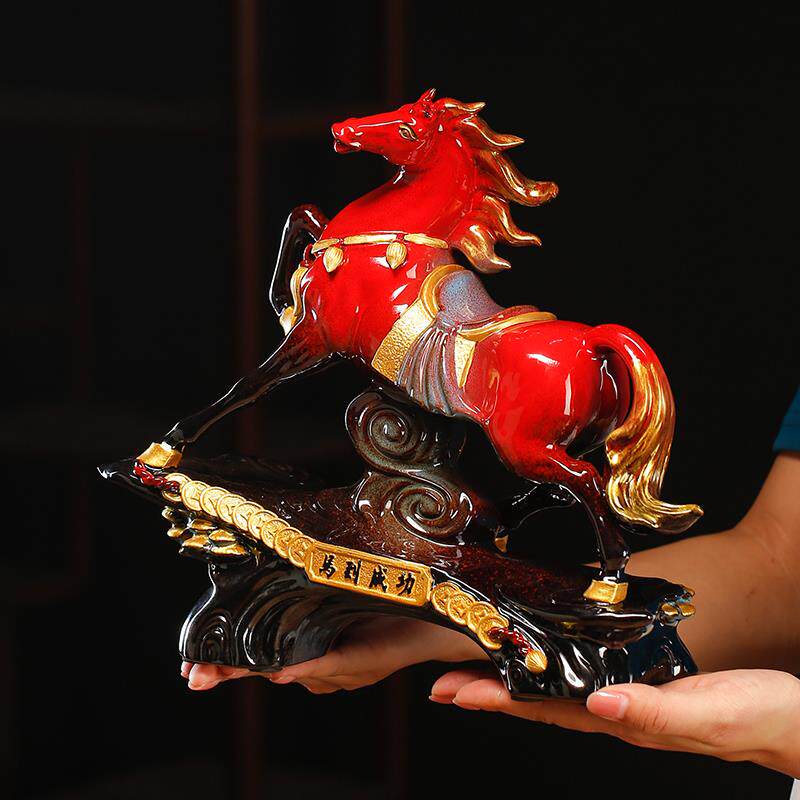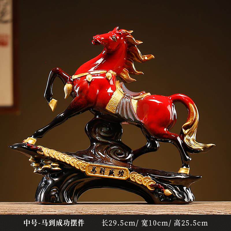 高档陶瓷马到成马摆玄件新中式客厅装礼饰品家居关功办公室装饰招
