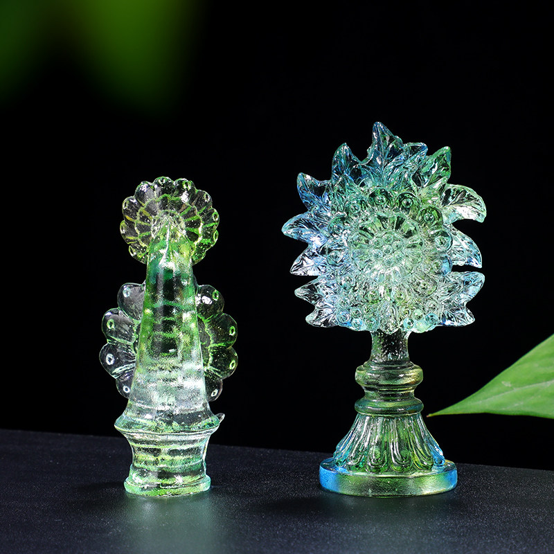 朵玛食子彩色古法琉璃西摩尼宝八供家用琥珀色食子酥油花摆件