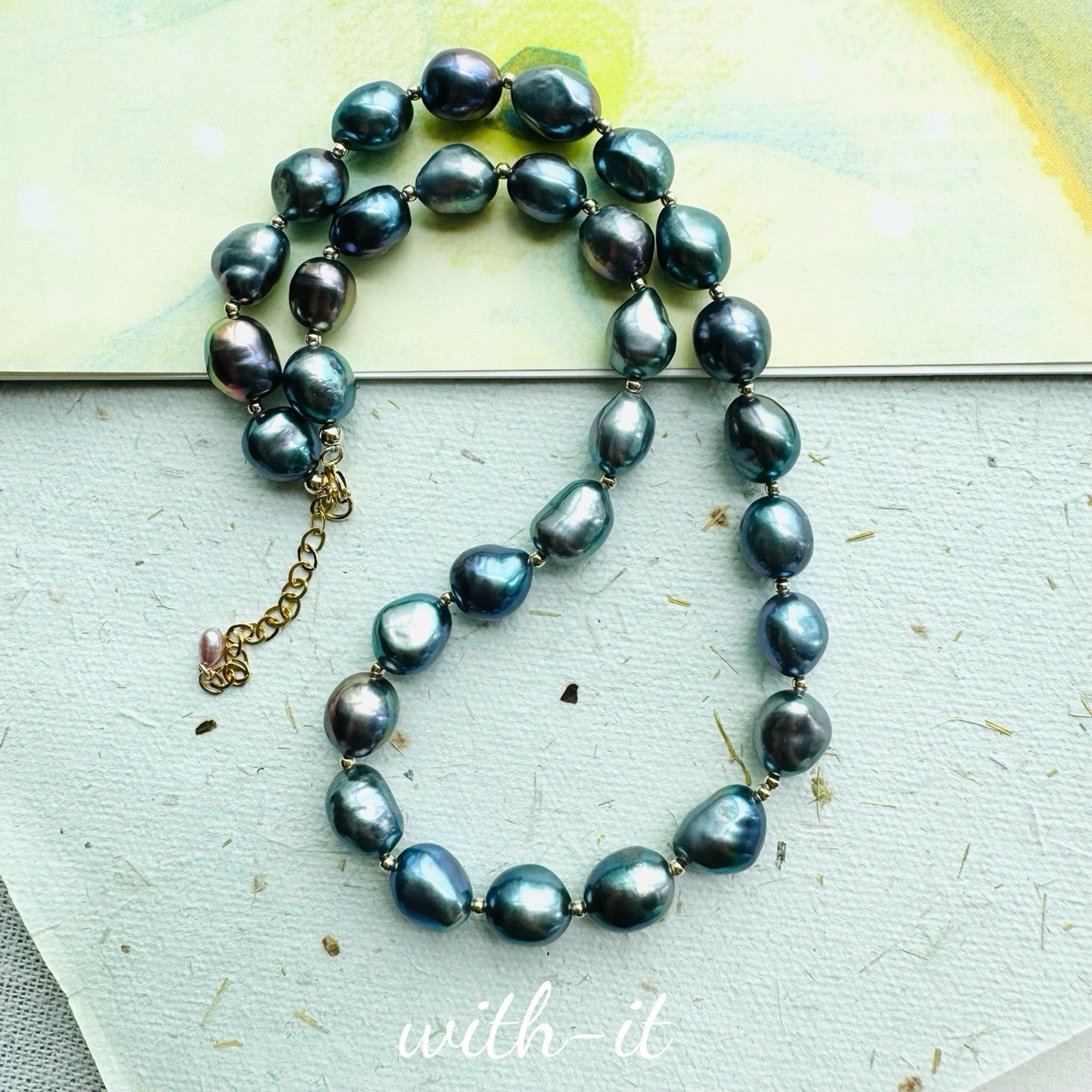 with it淡水珍珠黑珍珠孔雀绿大珠项链珠宝感时髦意大利复古风172