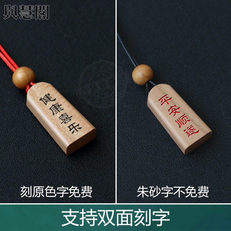 真桃木无事牌迷你项链定制刻字宝宝平安男女随身天然木朱砂紫薇讳