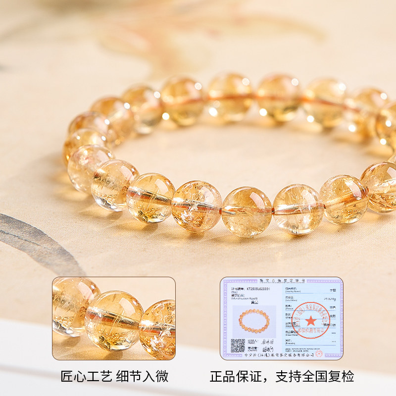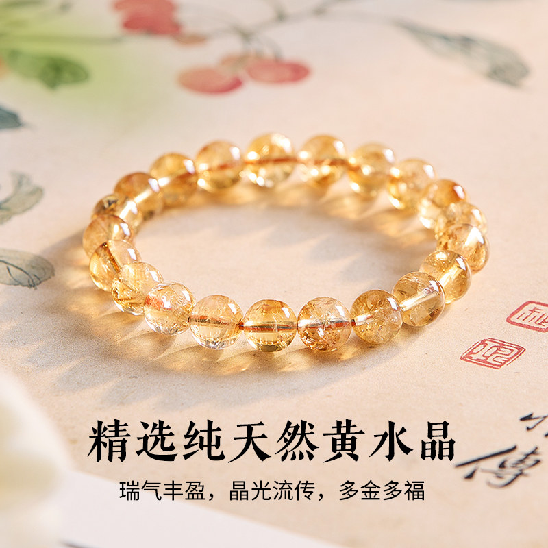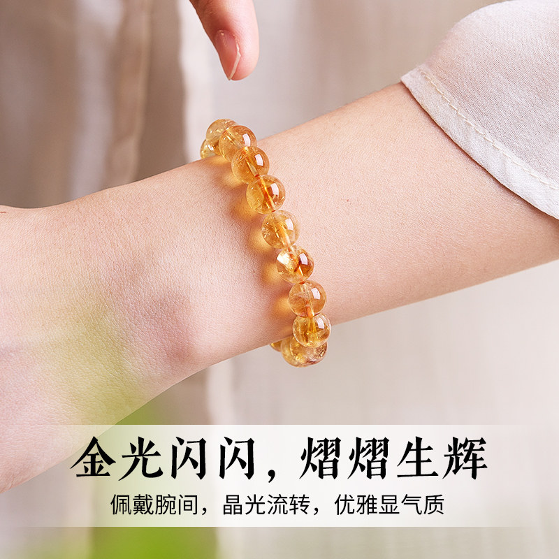 灵文手作天然黄水晶手链招财转运手串高级感巴西玉石黄色聚财串珠