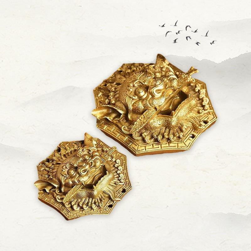 铜狮咬剑挂件铜狮子虎头铜雕牌兽八角狮头摆件睚眦工艺品精美