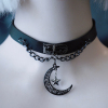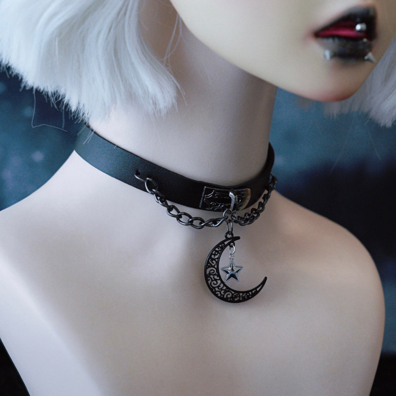 怪糖饰物集原创手工花纹星月吊坠仿皮颈链choker暗黑亚文化黑色