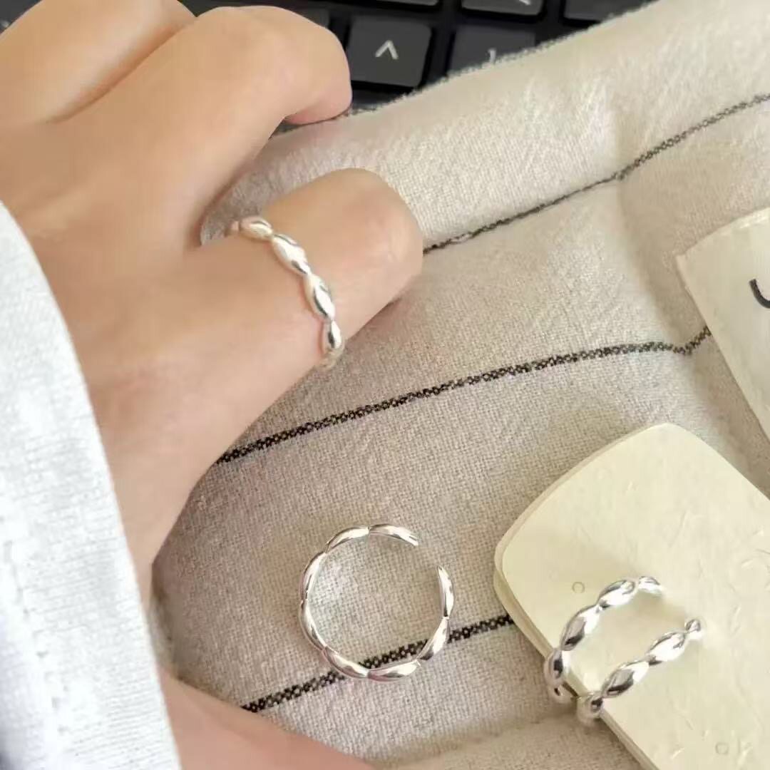 jiwoo金智羽同款戒指米珠小众设计感简约百搭银色开口戒指女时尚