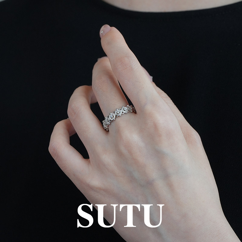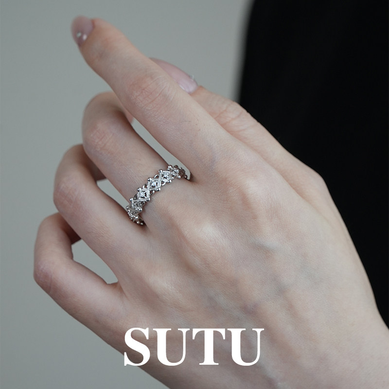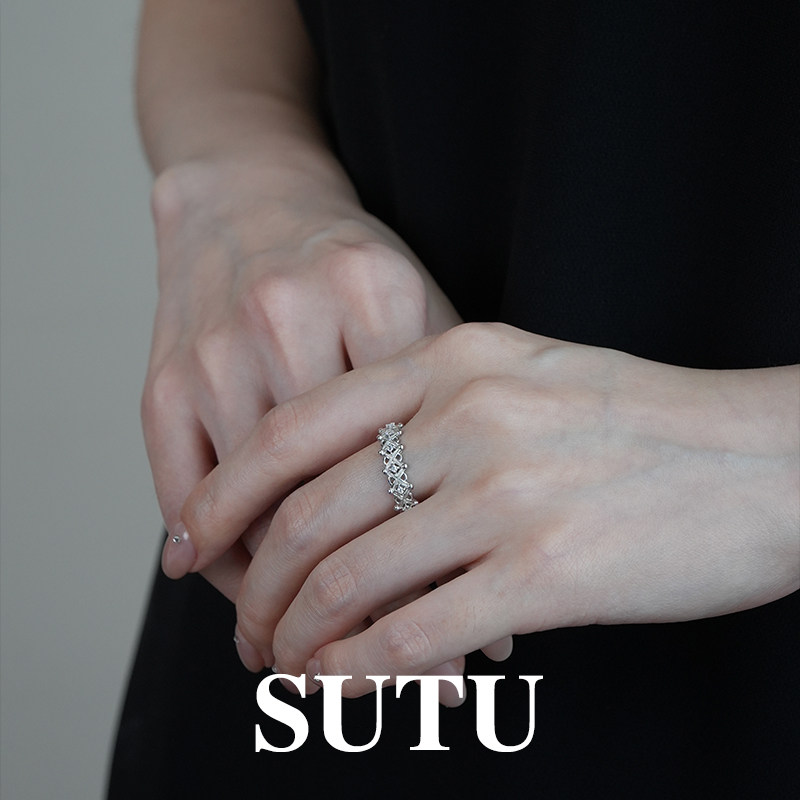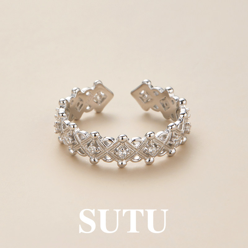 素图戒指菱格纹925银精致新中式设计开口食指中指戒轻奢高级指环