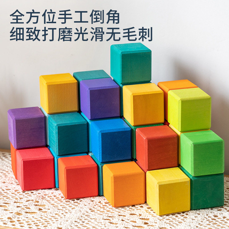 简约现代售楼处儿童区桌面积木摆件儿童房正方形木制拼装玩具摆设