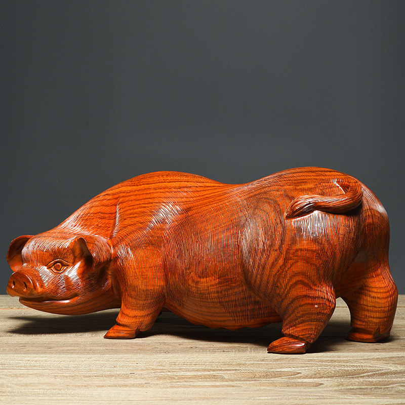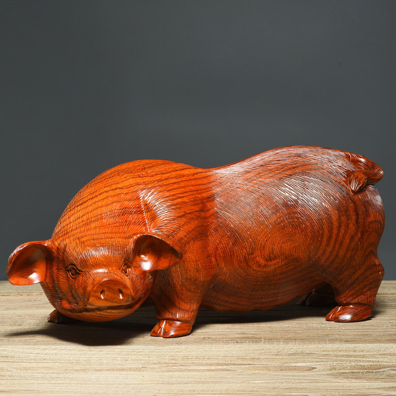 花梨木雕福猪摆件可爱实木客厅动物十二生肖猪装饰红木雕刻工艺品