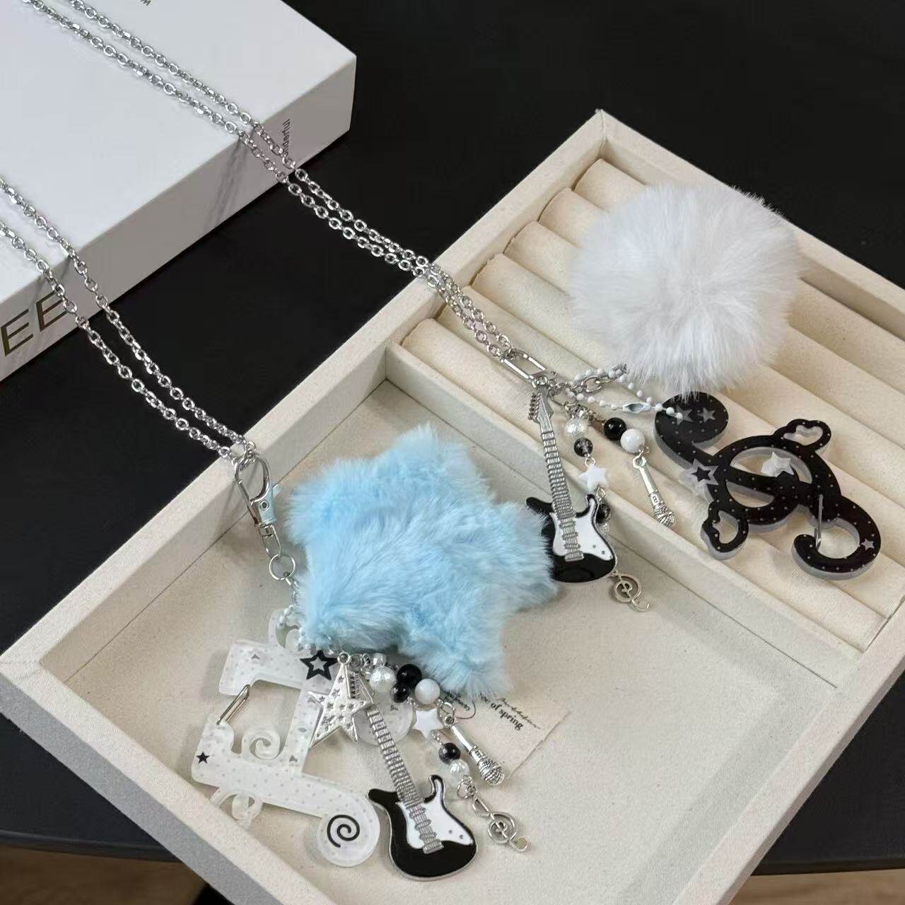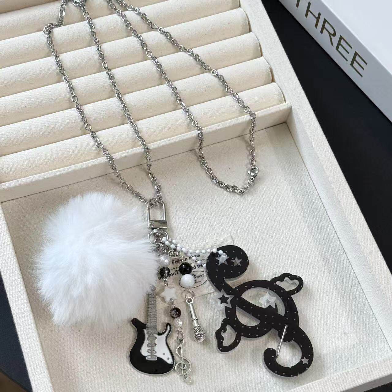 y2k亚比摇滚吉他星星毛绒挂件音符长链条项链女小众设计毛衣链潮