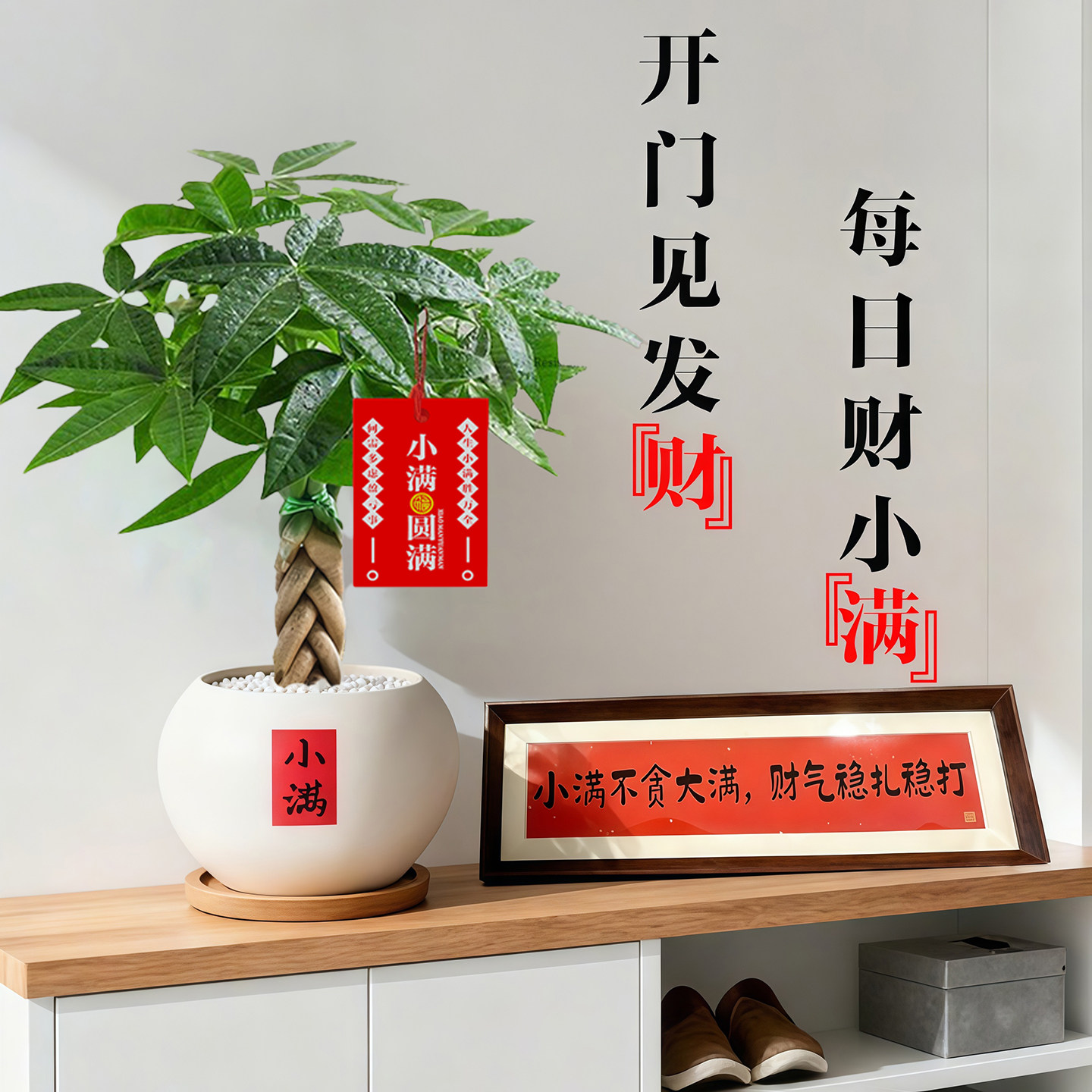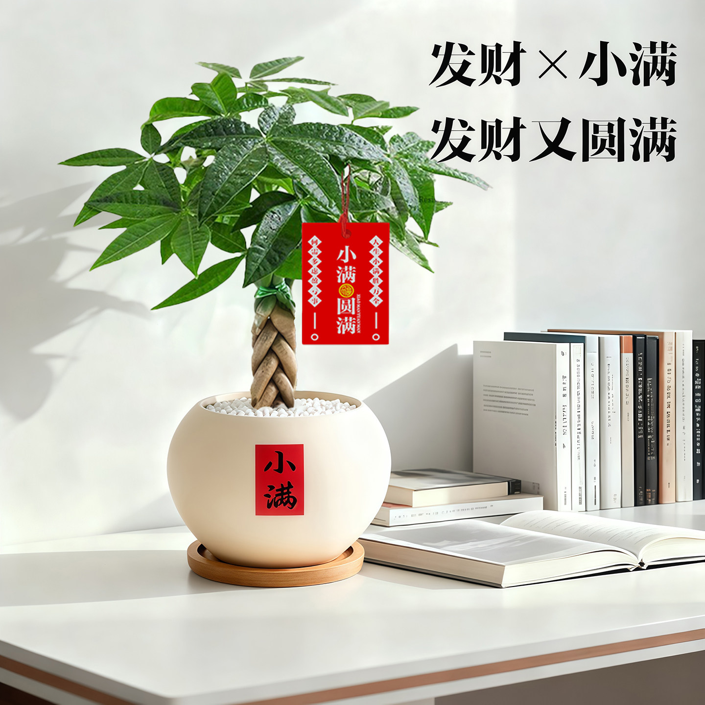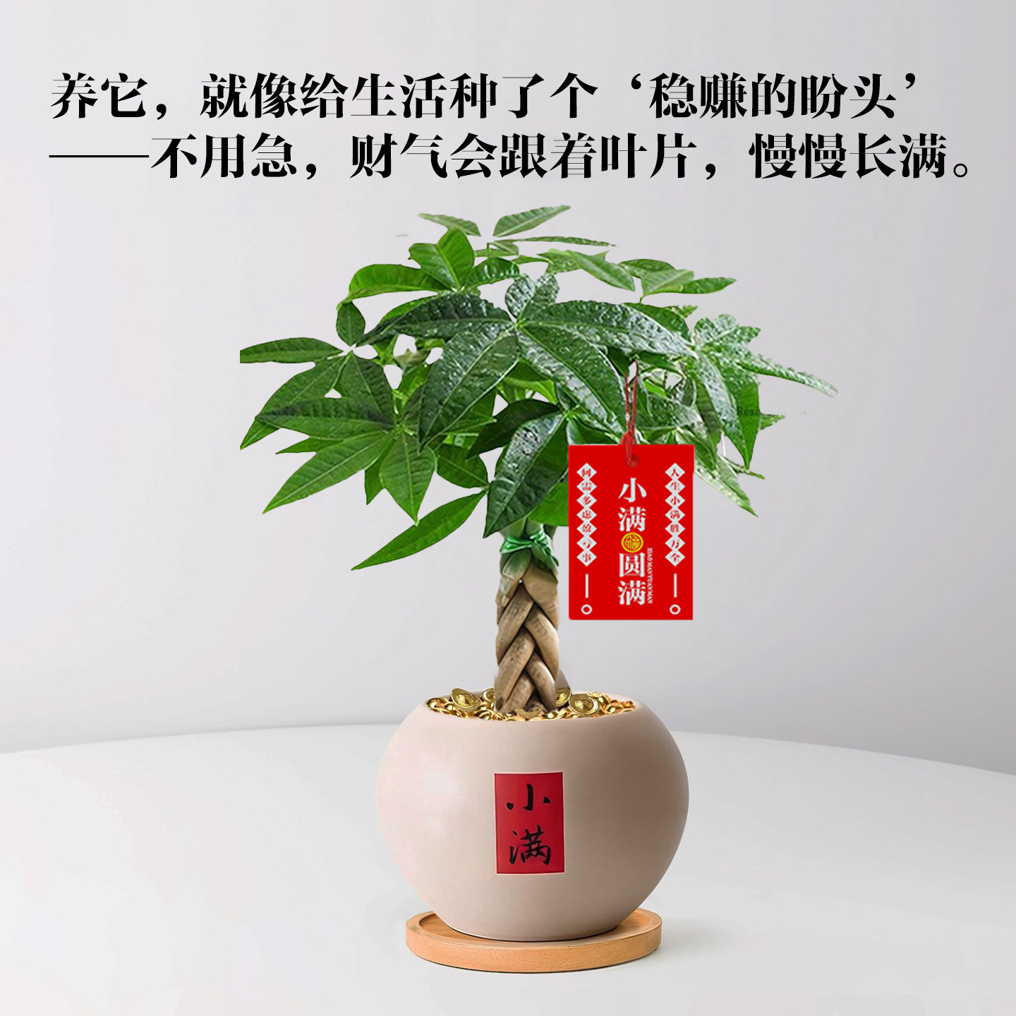 发财树小盆栽室内招财植物摆件中式禅意客厅办公室桌面盆景绿植