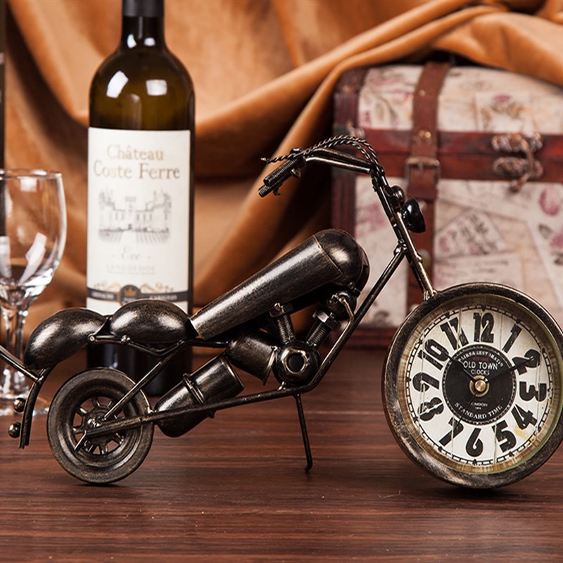 铁艺摩托车摆件 室内装饰品摆设创意现代摆饰 家居艺术品书房台钟