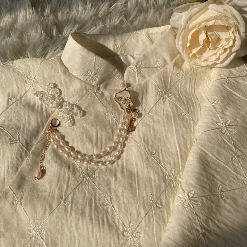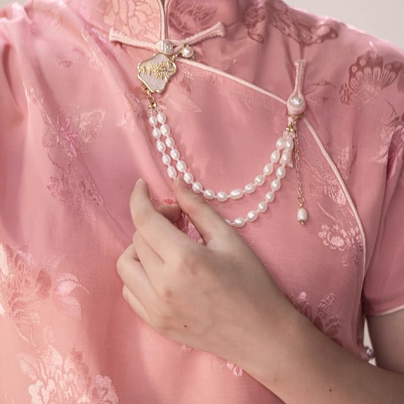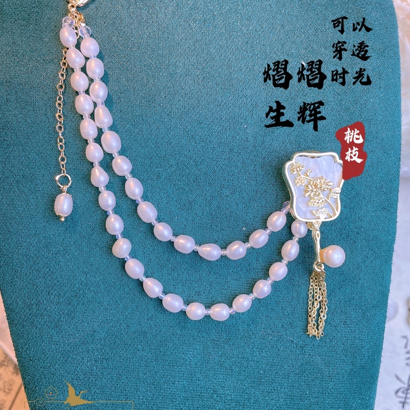 旗袍配饰新款淡水珍珠国风旗袍压襟胸针 团扇胸针 古风配饰女礼物