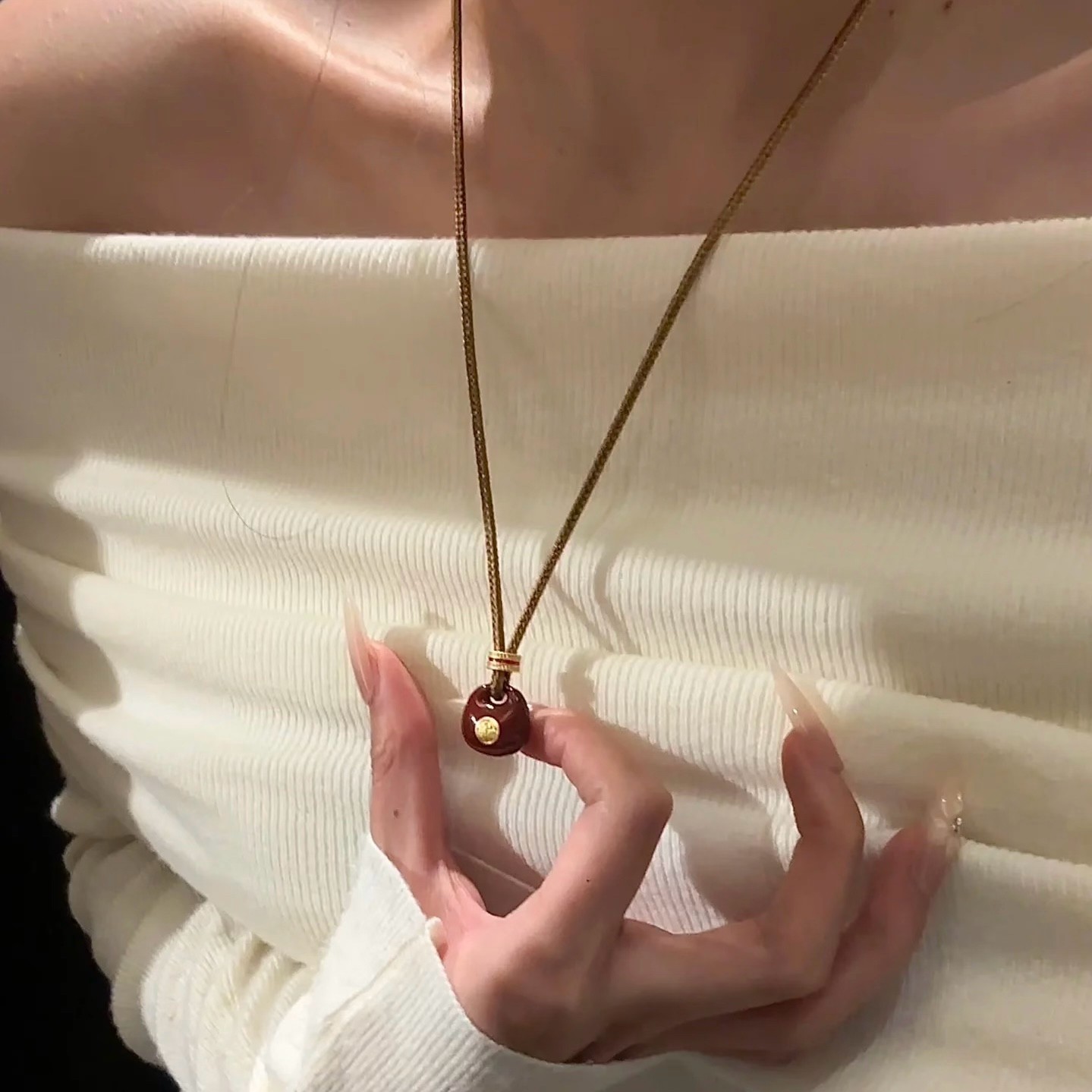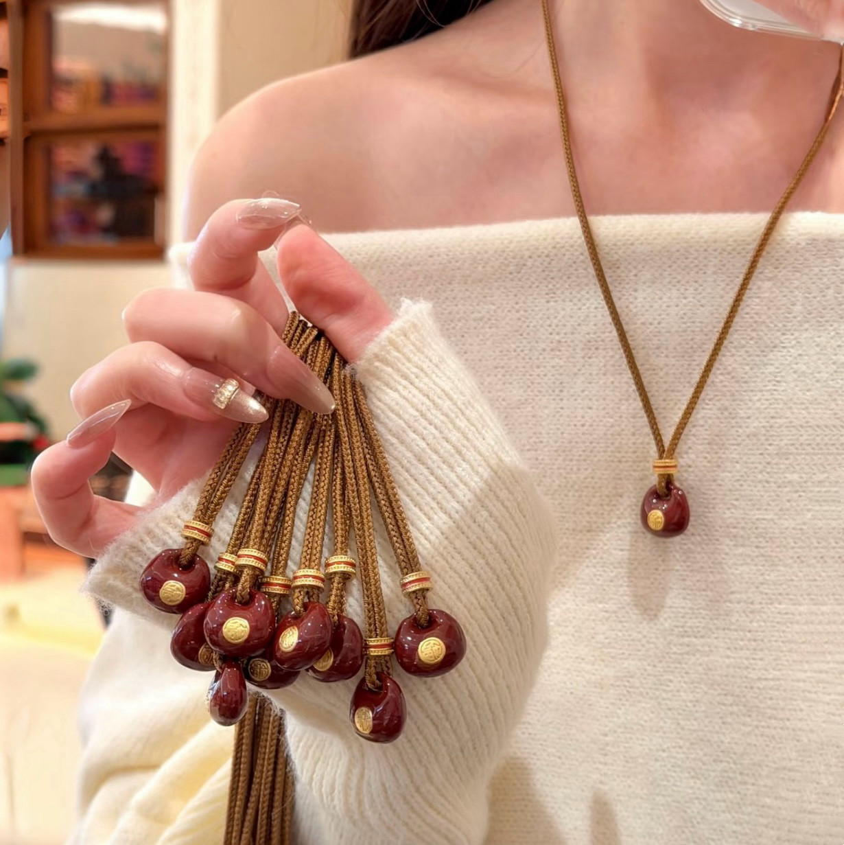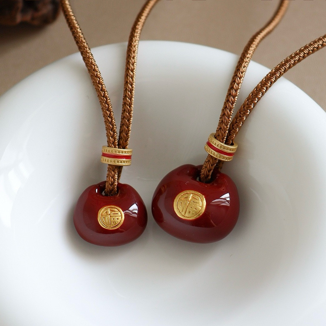 新中式红色珐琅滴油小胖福吊坠项链女福袋复古高级感长款毛衣链