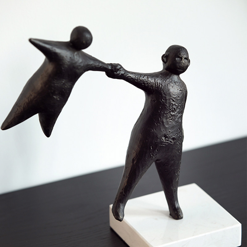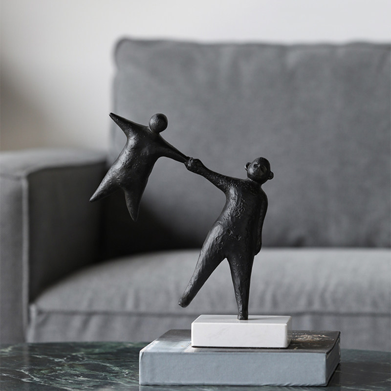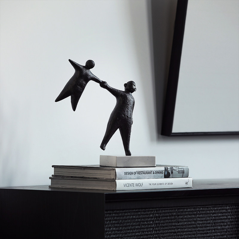 黑色铸铁拉手人物摆件新中式复古客厅书房样板间酒店抽象软装陈设