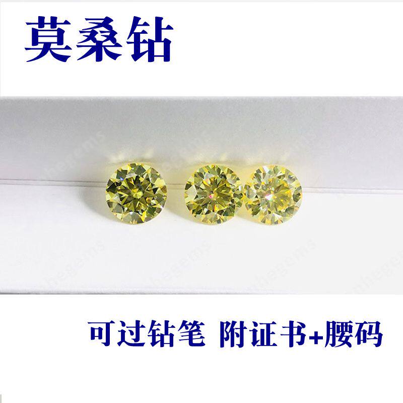 过钻笔50分金黄色莫桑石圆形1ct2CT莫桑裸石DIY镶嵌戒指配石