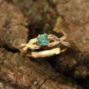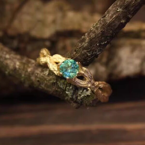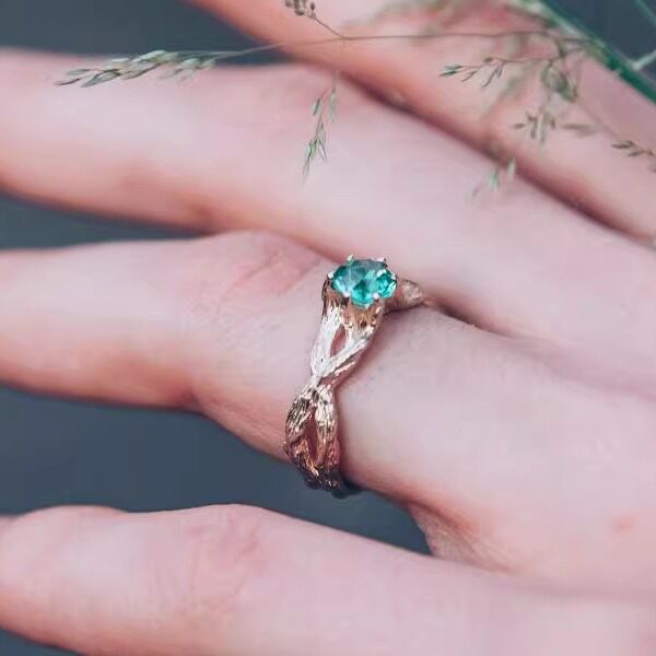 海外代购Green◇手作精致14K黄金编织绿色石英宝石镶嵌细枝戒指