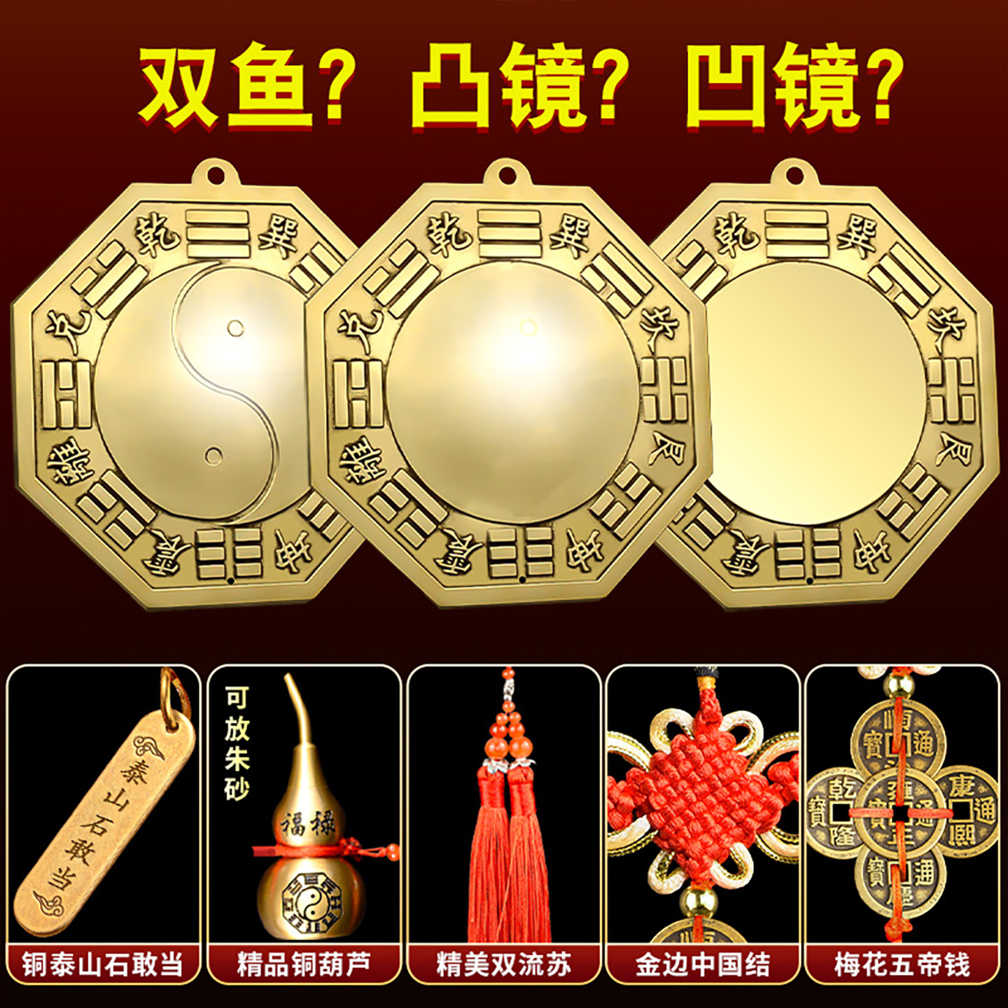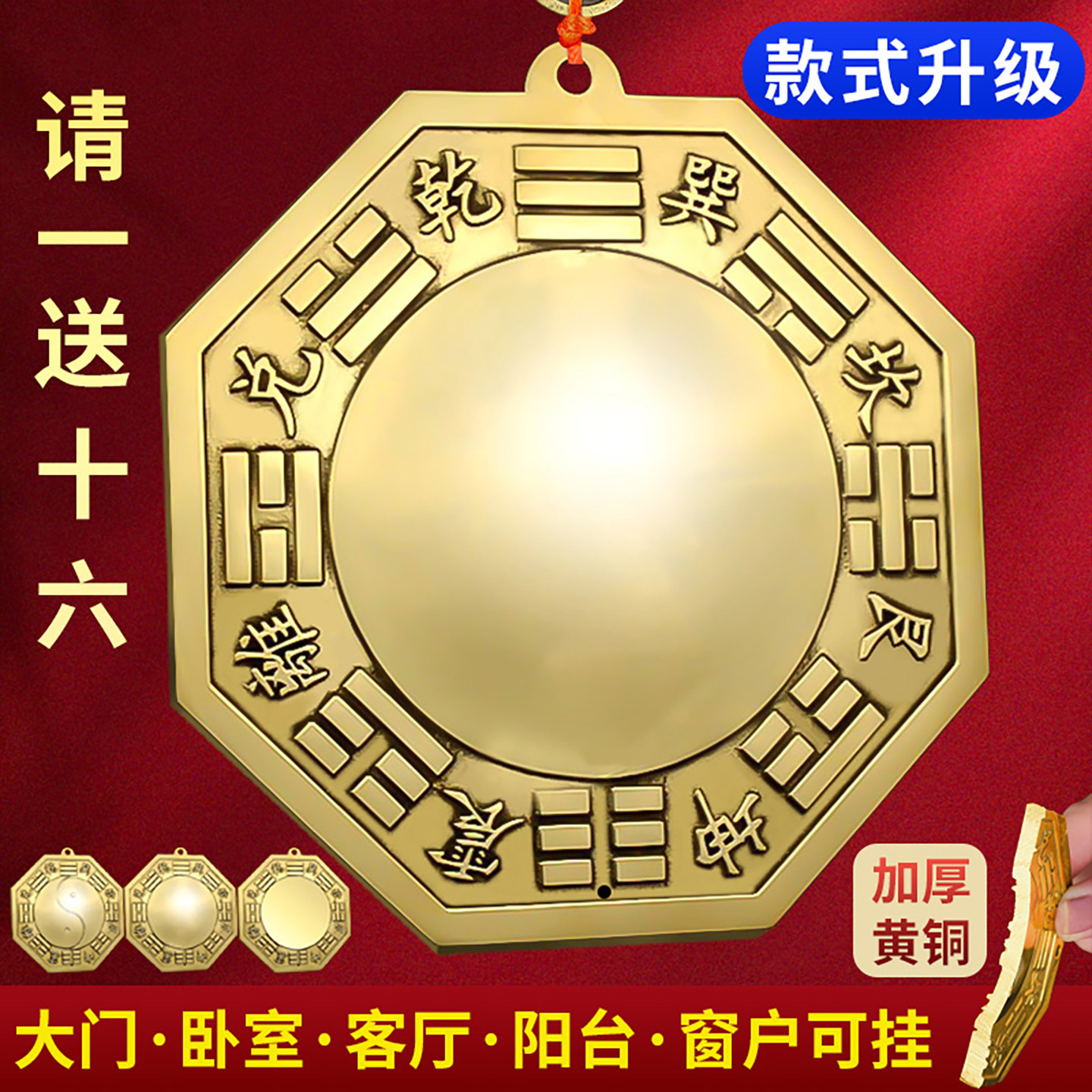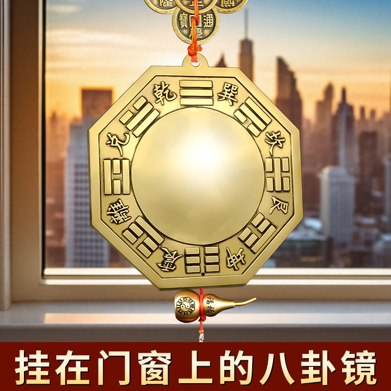 八卦镜怎么挂凸镜农村大门口窗户凹面镜铜质太极八卦铜镜挂门反光
