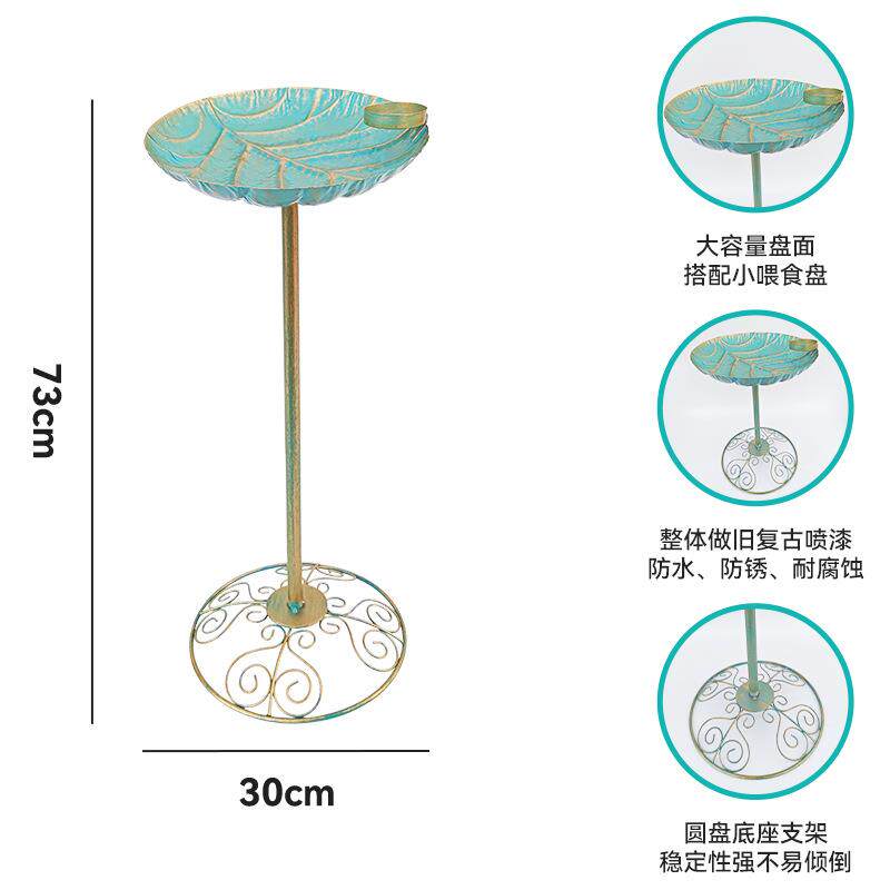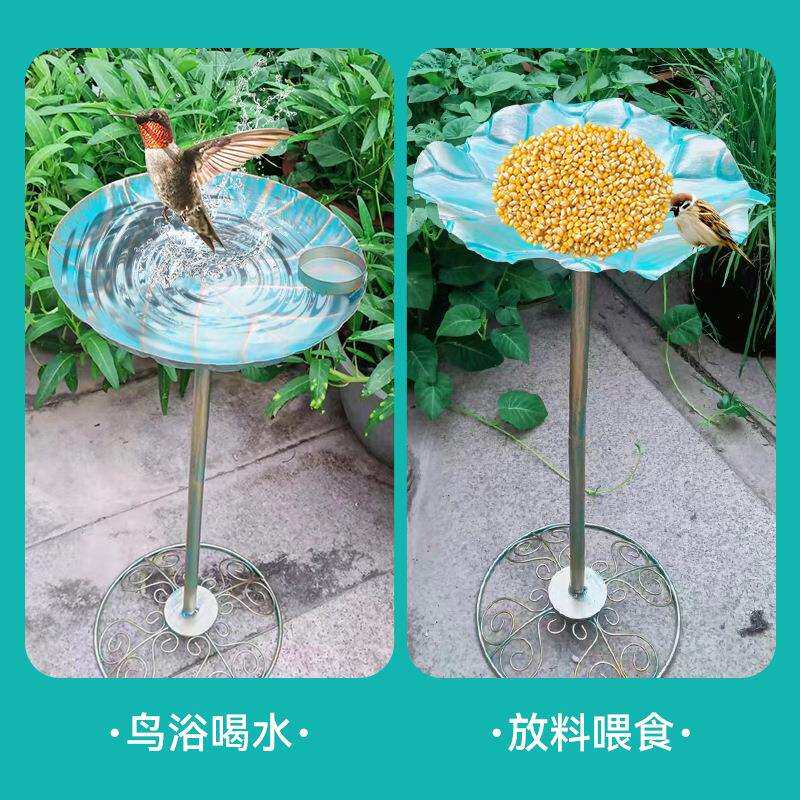 跨境户外蓝色花朵铁艺喂鸟盆公园鸟类欧式喂水盘金属装饰工艺品