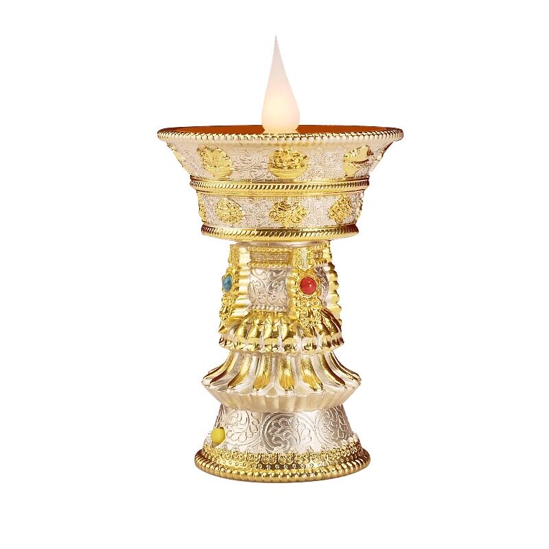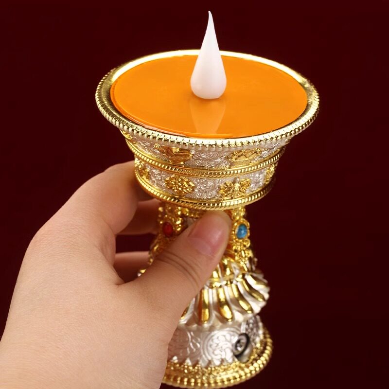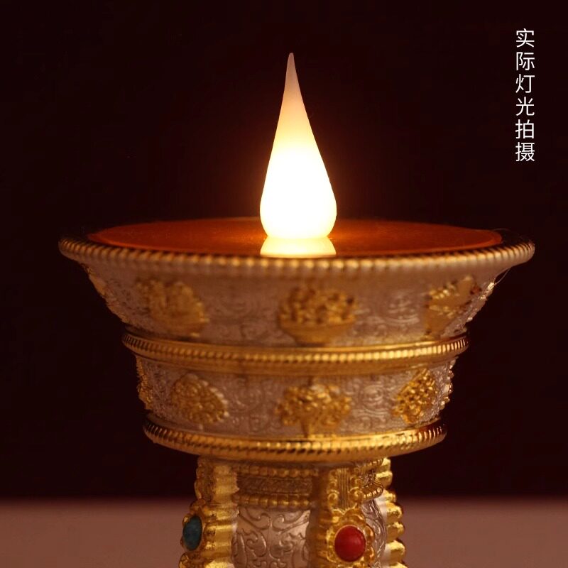 合金LED电子酥油灯佛前供仿真长明黄色八吉祥充插家用格桑花摆件