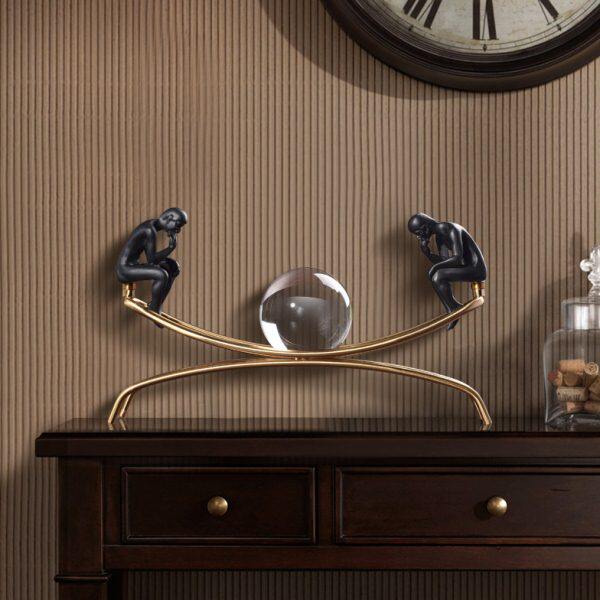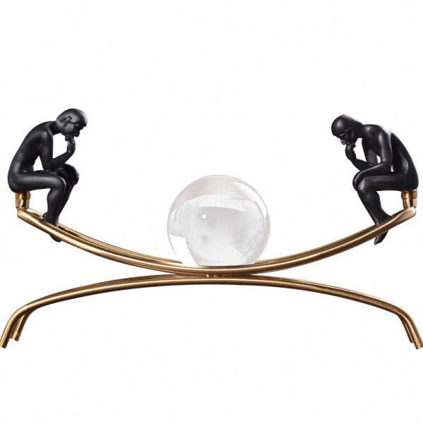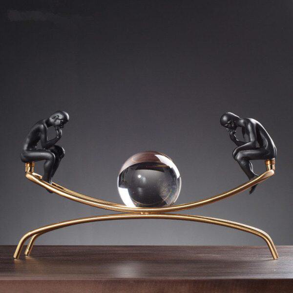 欧式轻奢平衡思考者摆件现代客厅电视柜创意水晶球金属家居装饰品