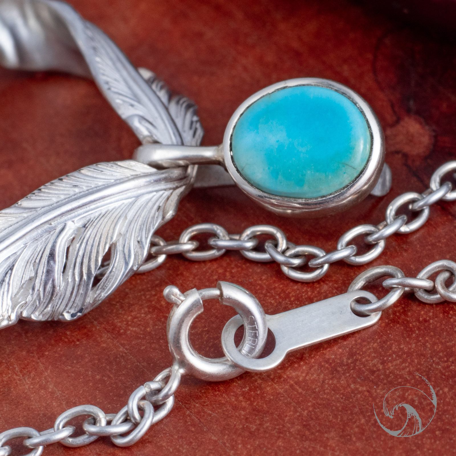 【正品】horizon blue松石卷羽毛细银链项链男女 全新HB银饰