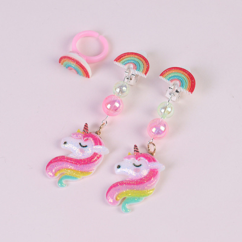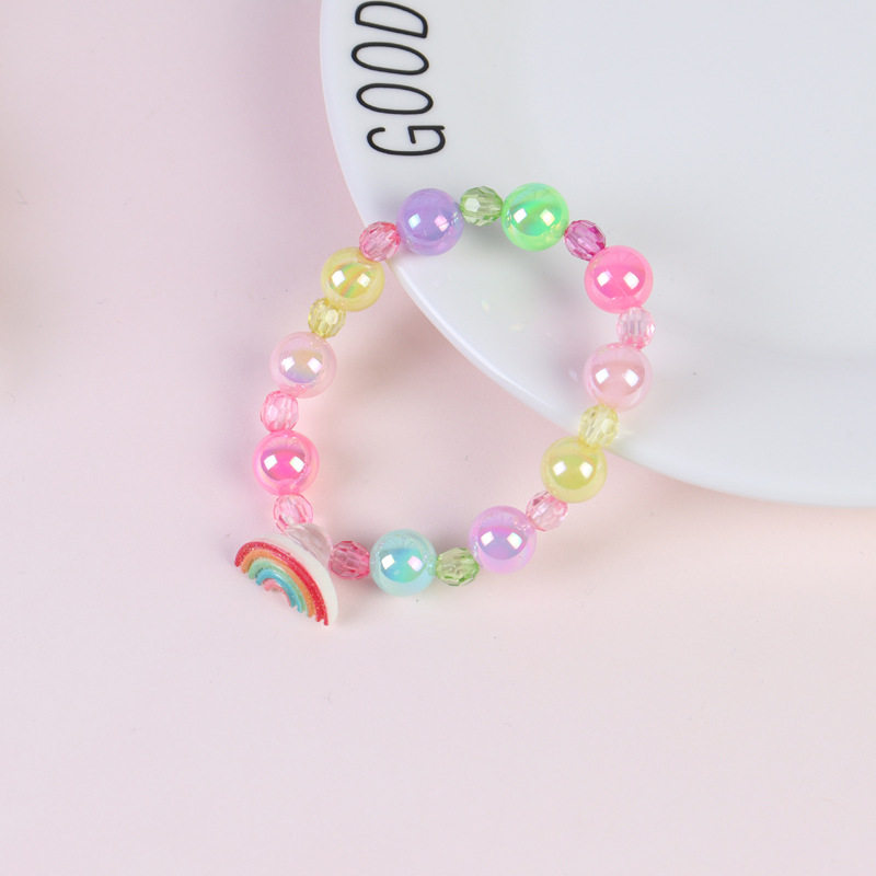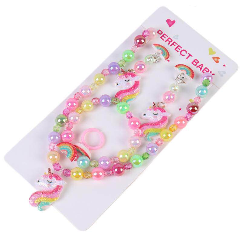 新款儿童项链套装独角兽项链女珍珠手链卡通小马公主首饰