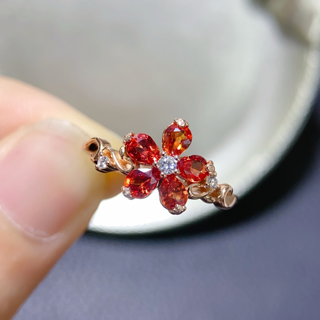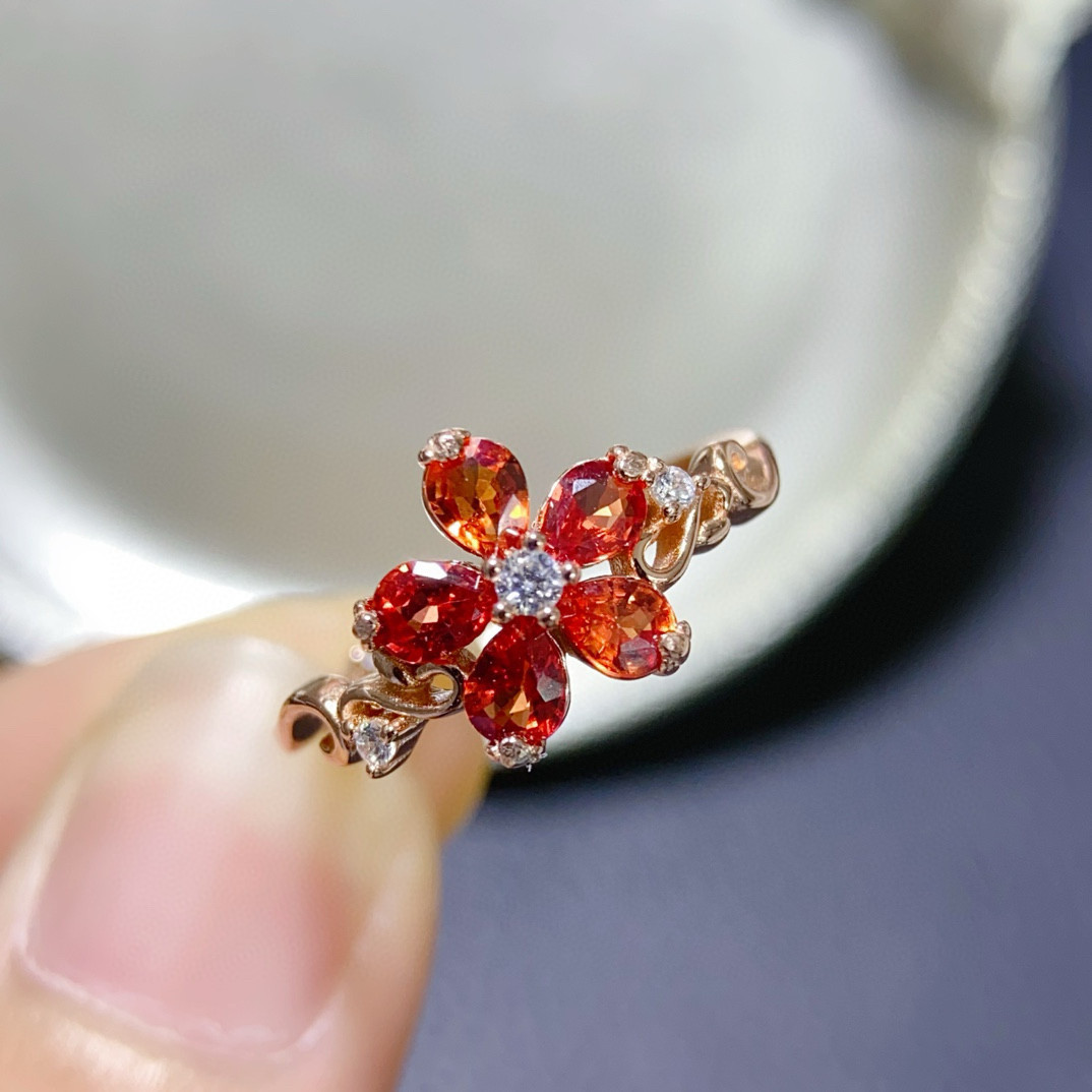 高品质天然红色蓝宝石戒指红蓝宝艳如烈火3*4mm925银精工镶嵌