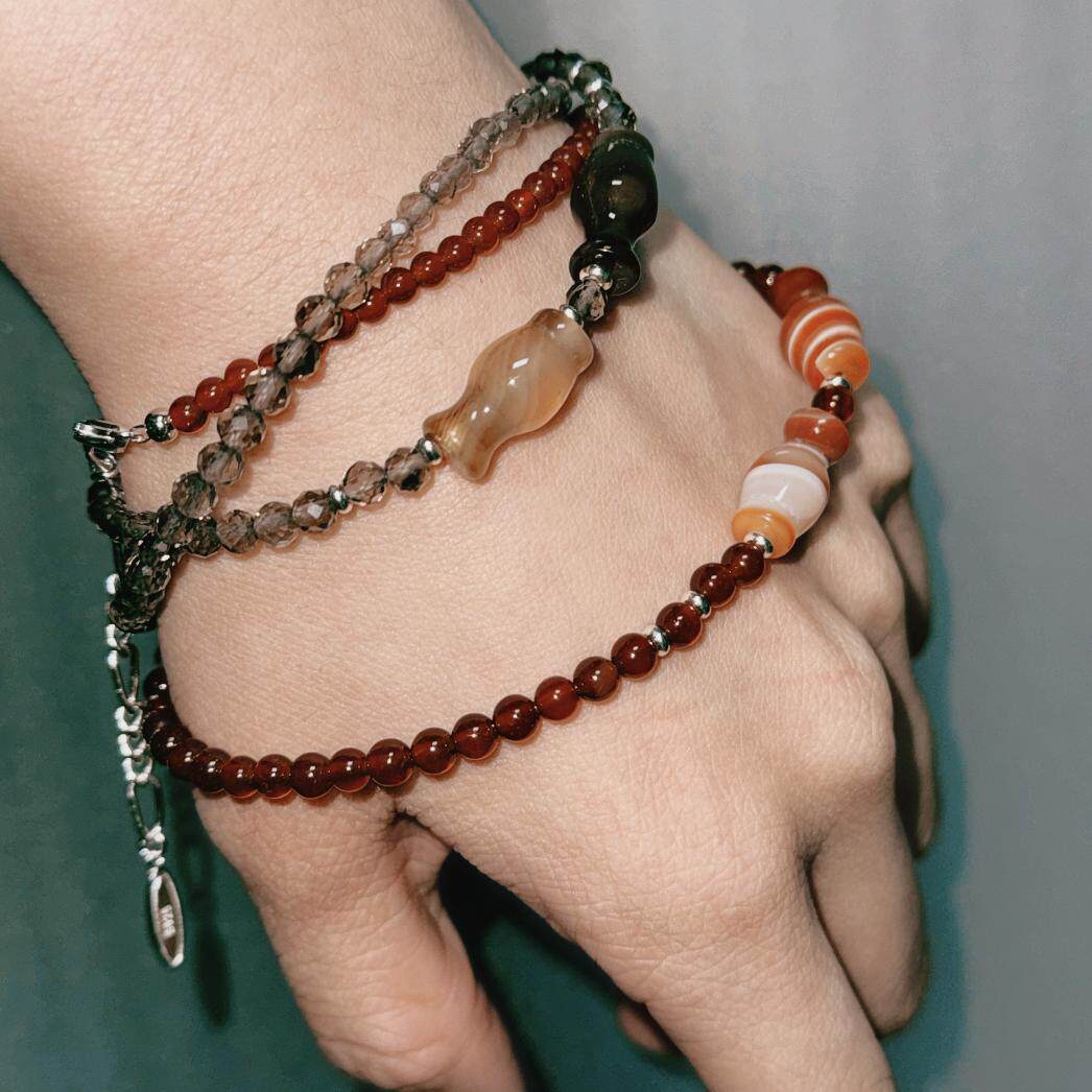 QuriouStone【朱志鑫同款】宝瓶花瓶手链925纯银红玛瑙黑尖晶茶晶