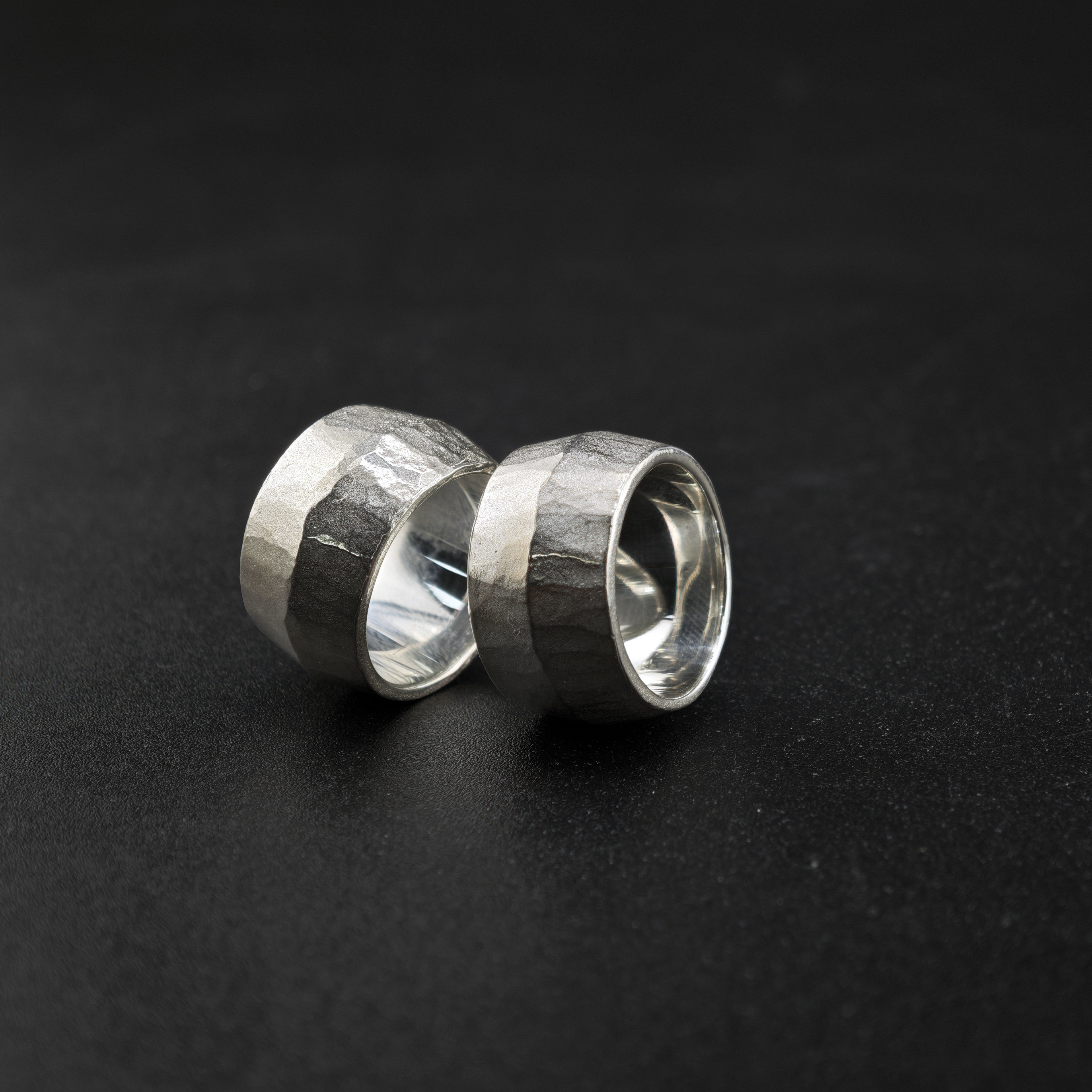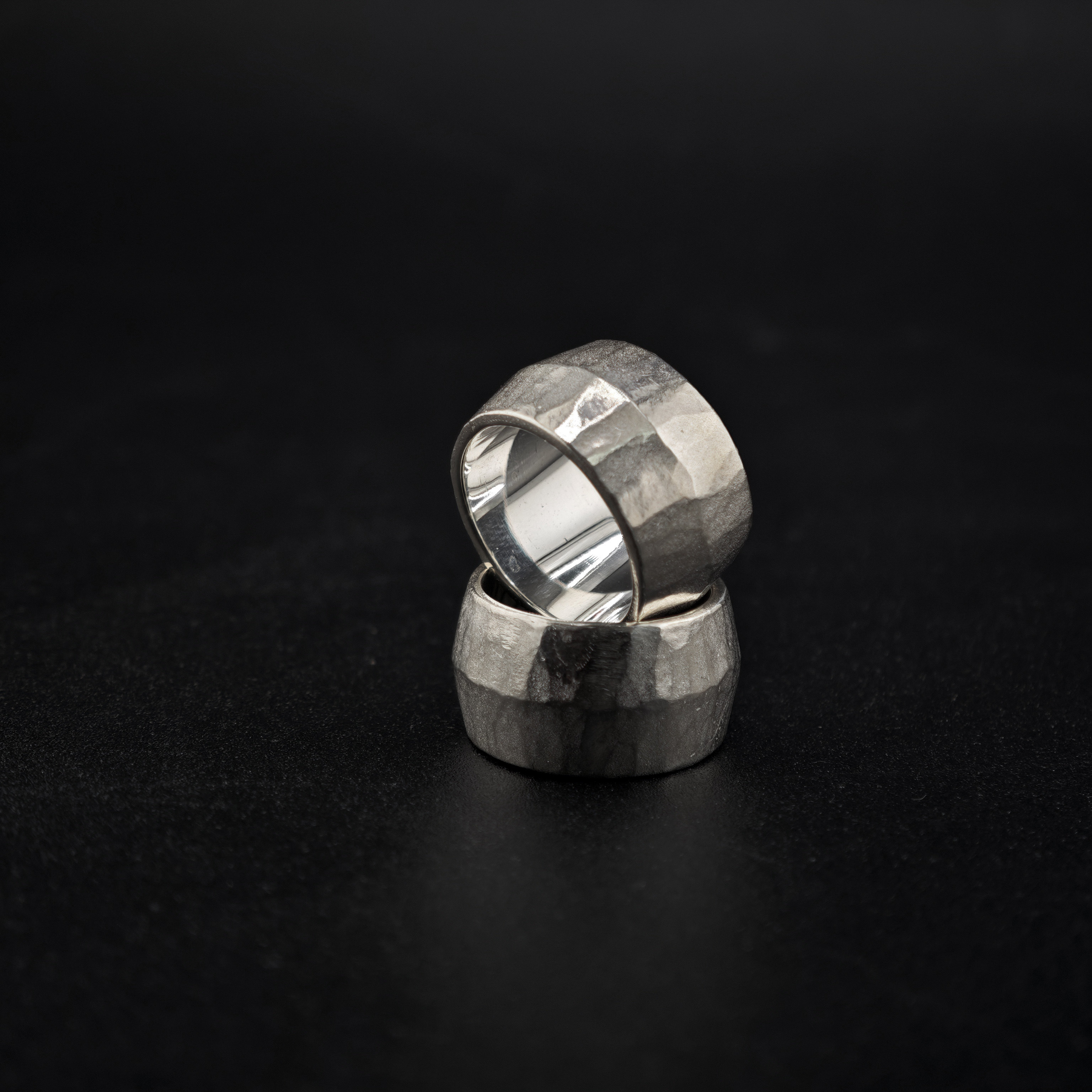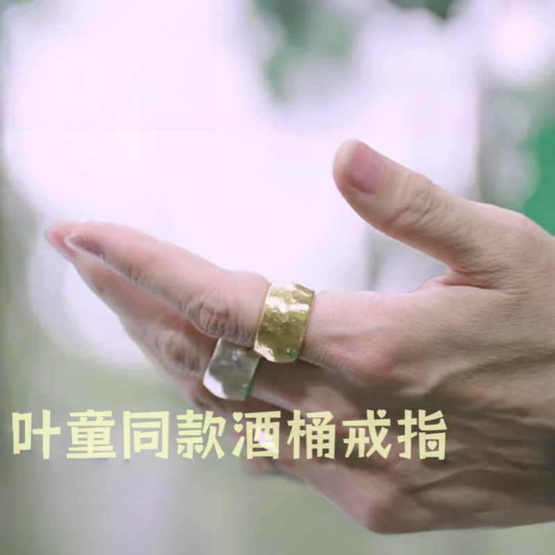 铁头的店 999足银叶童同款手工锤纹酒桶戒指 明星银饰男女款指环