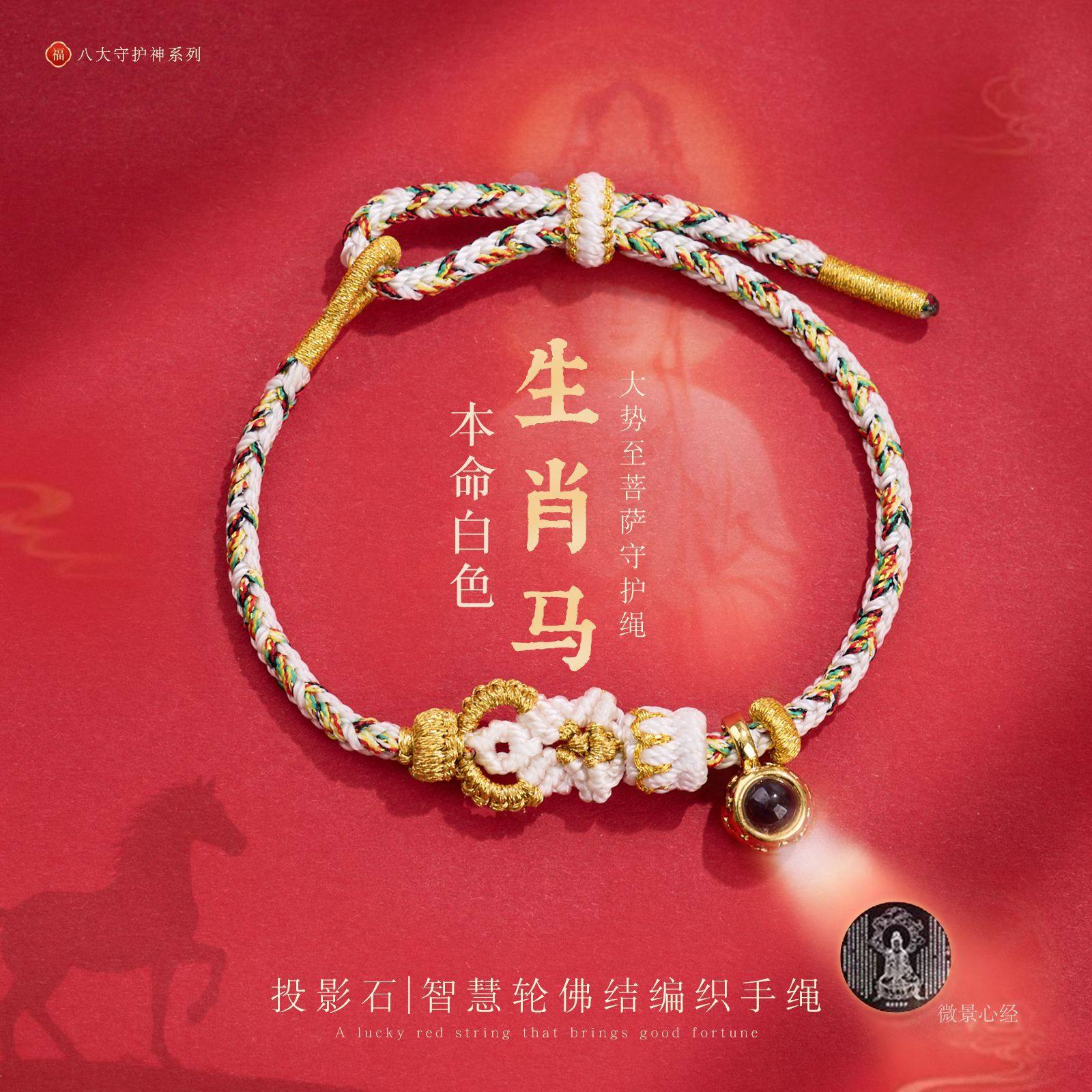 马年微雕投影八大守护神手工编织本命年十二生肖红绳手绳手链批发