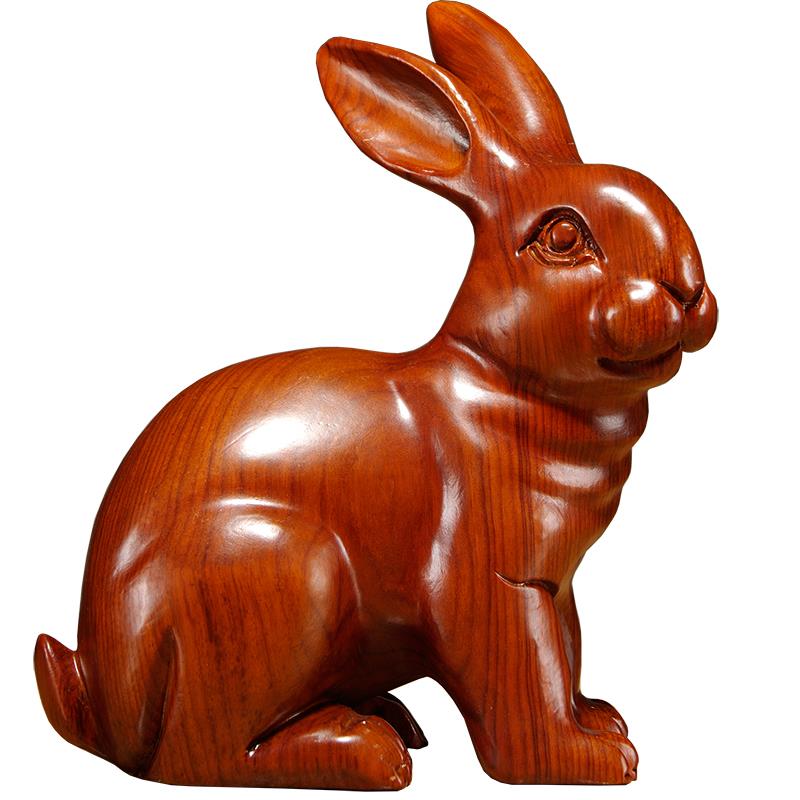 木头小兔子摆件实木质雕十二生肖木制大耳朵兔子吉祥物装饰工艺品