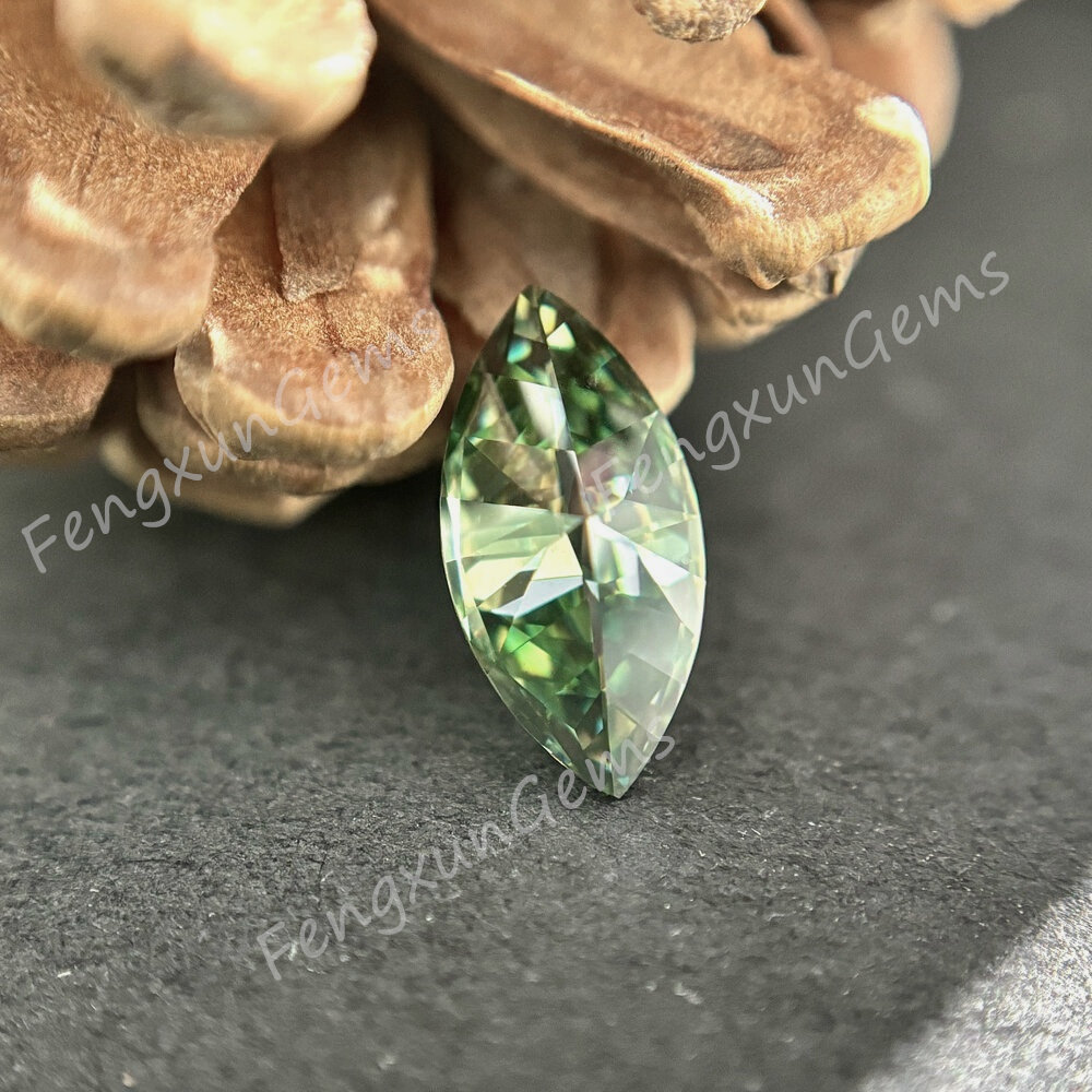 马眼形绿色原色莫桑钻石过钻笔带腰码合成碳硅石尖底首饰主石裸石